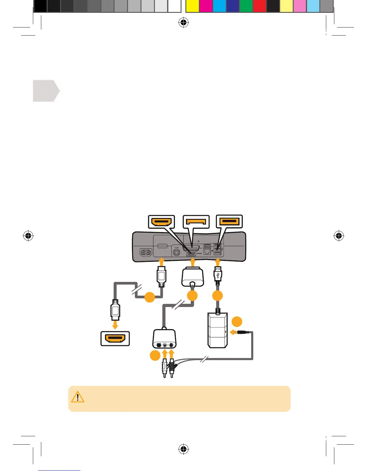 1] Raccorder le câble HDMI (non inclus) entre la