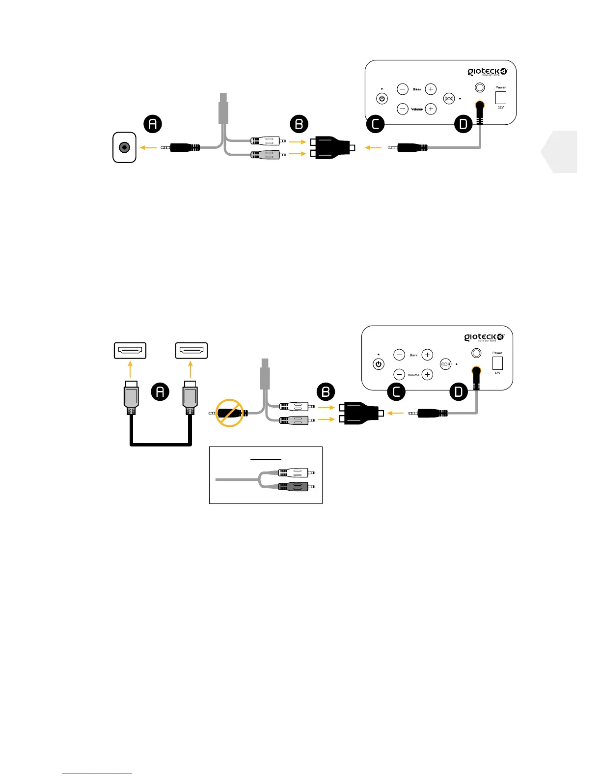 entsprechenden Anschlüsse des Cinch-Adapters (B) stecken.