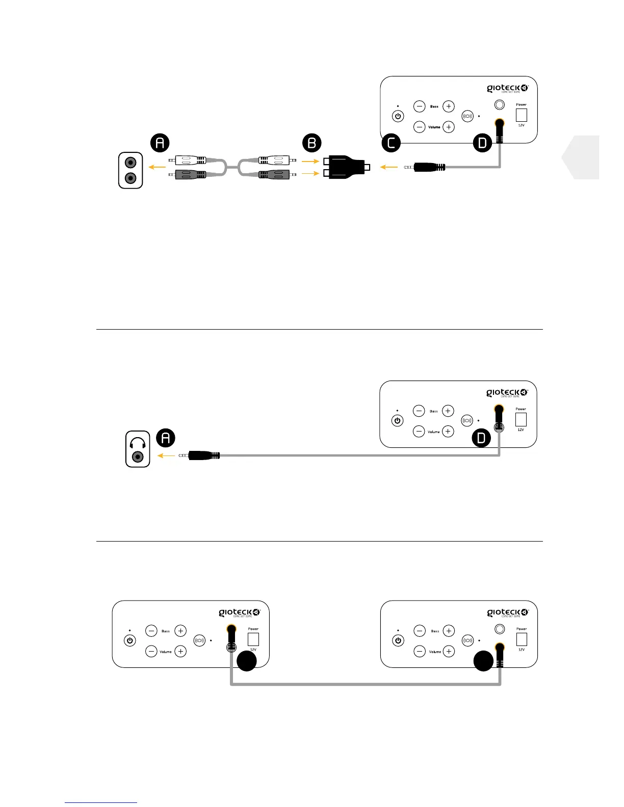 Anschlüssen des Cinch-Adapters (B) verbinden.