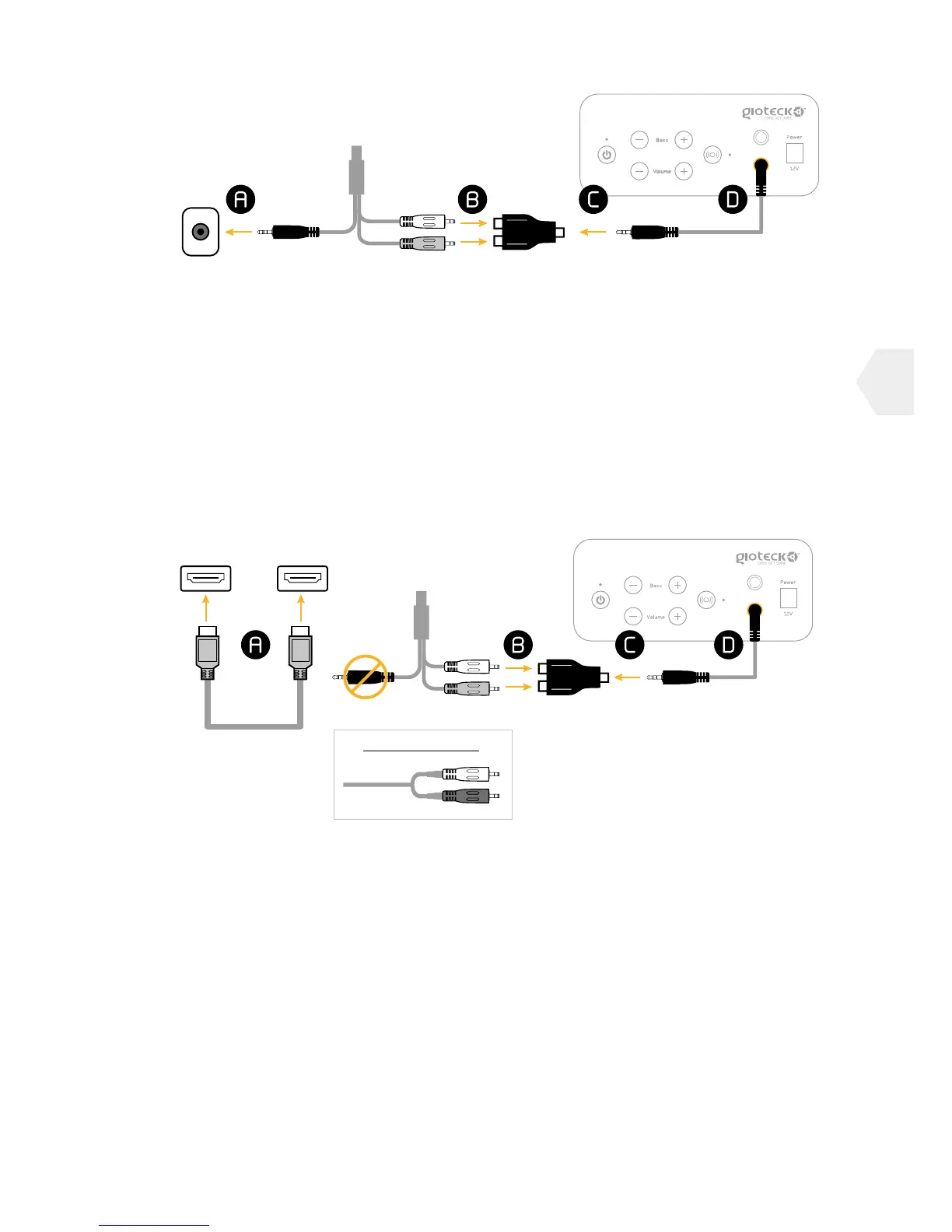 3] Conecte un extremo del cable de audio mini al adaptador RCA (C)