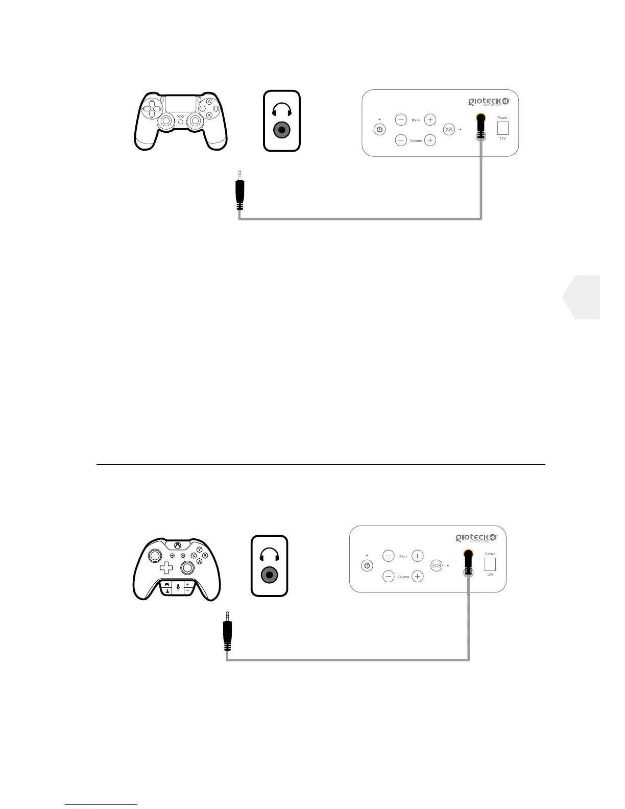 1] Ligue o cabo de áudio fornecido com a RC-5 ao comando da consola PS4.