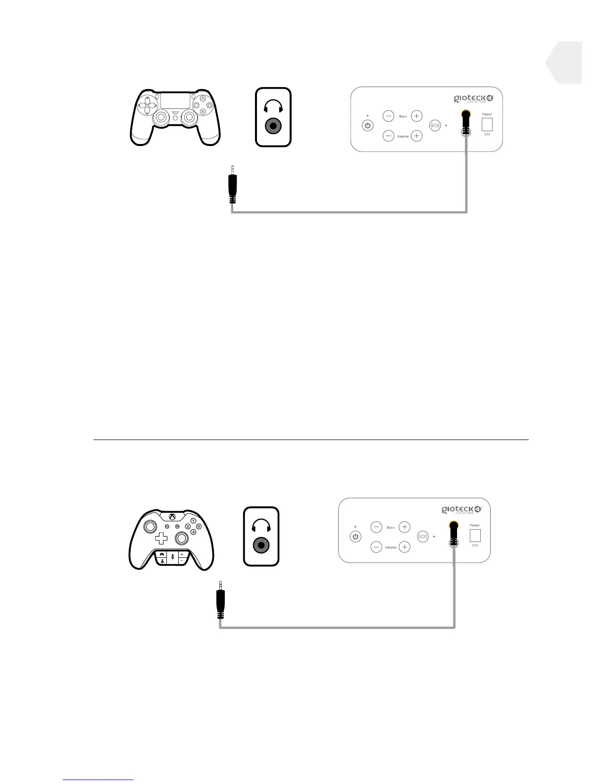 1] Connect the audio cable supplied with the RC-5 to the PS4 controller.