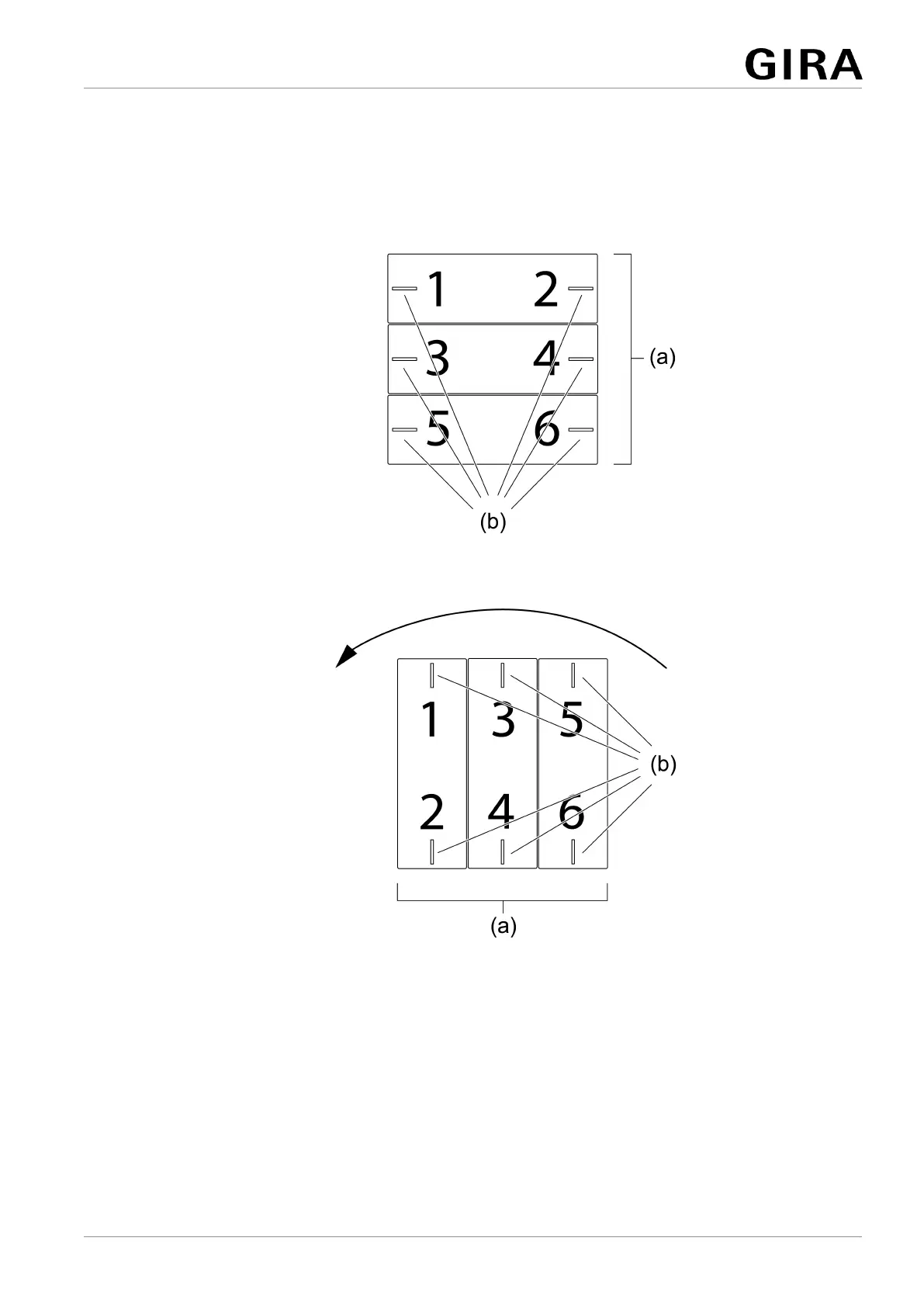 Figure2: Device components 3-gang (installation position "turned by -90°", vertical
