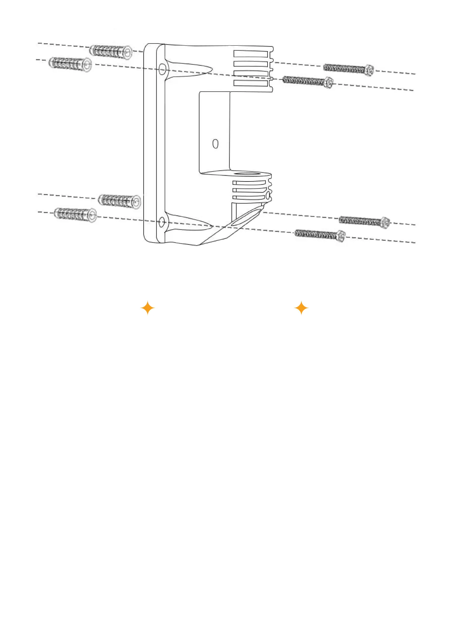 Hammer wall anchors into the 4 holes.