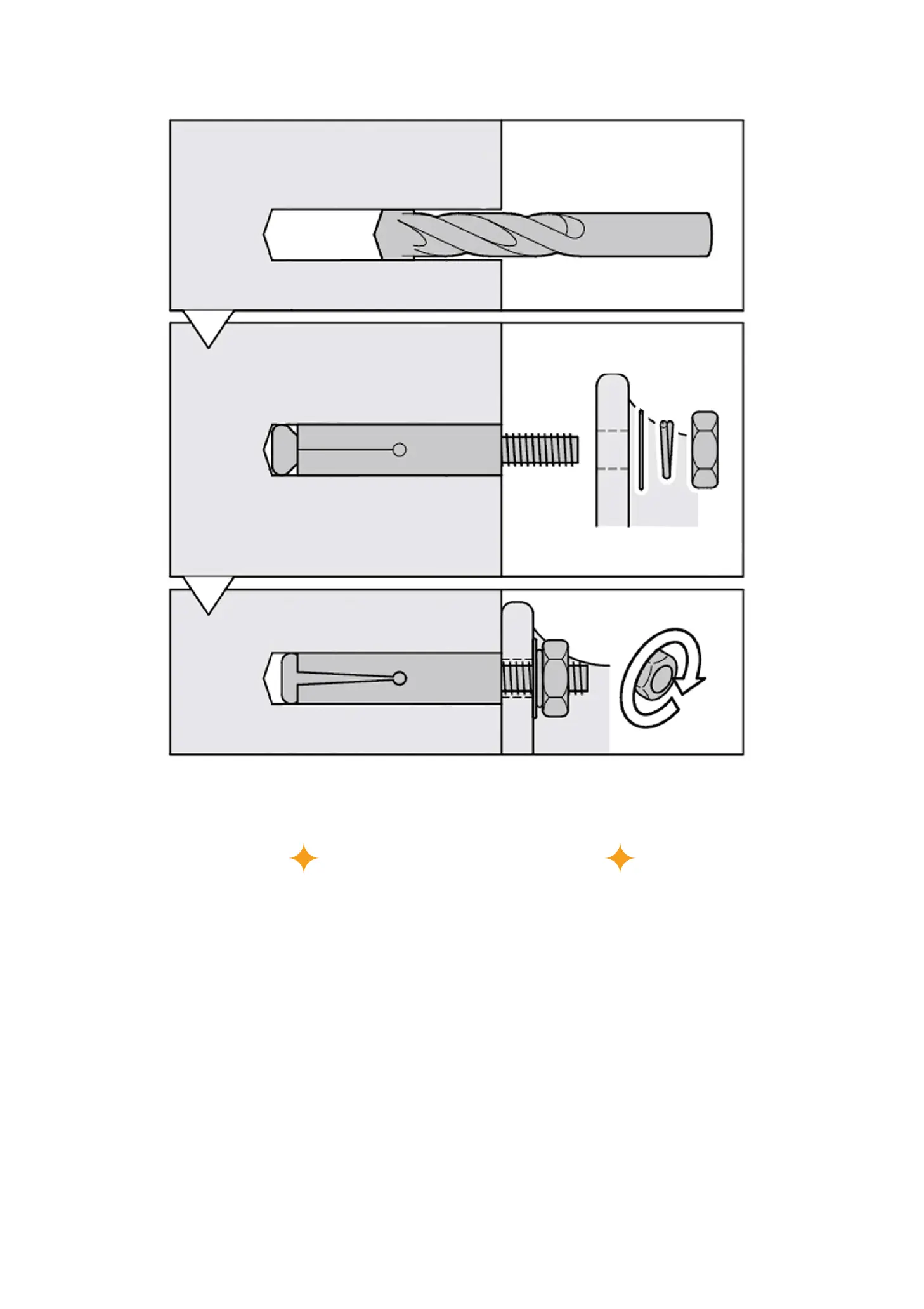 Hang the bracket on the anchors, put on the washers and screw on the nuts, then use