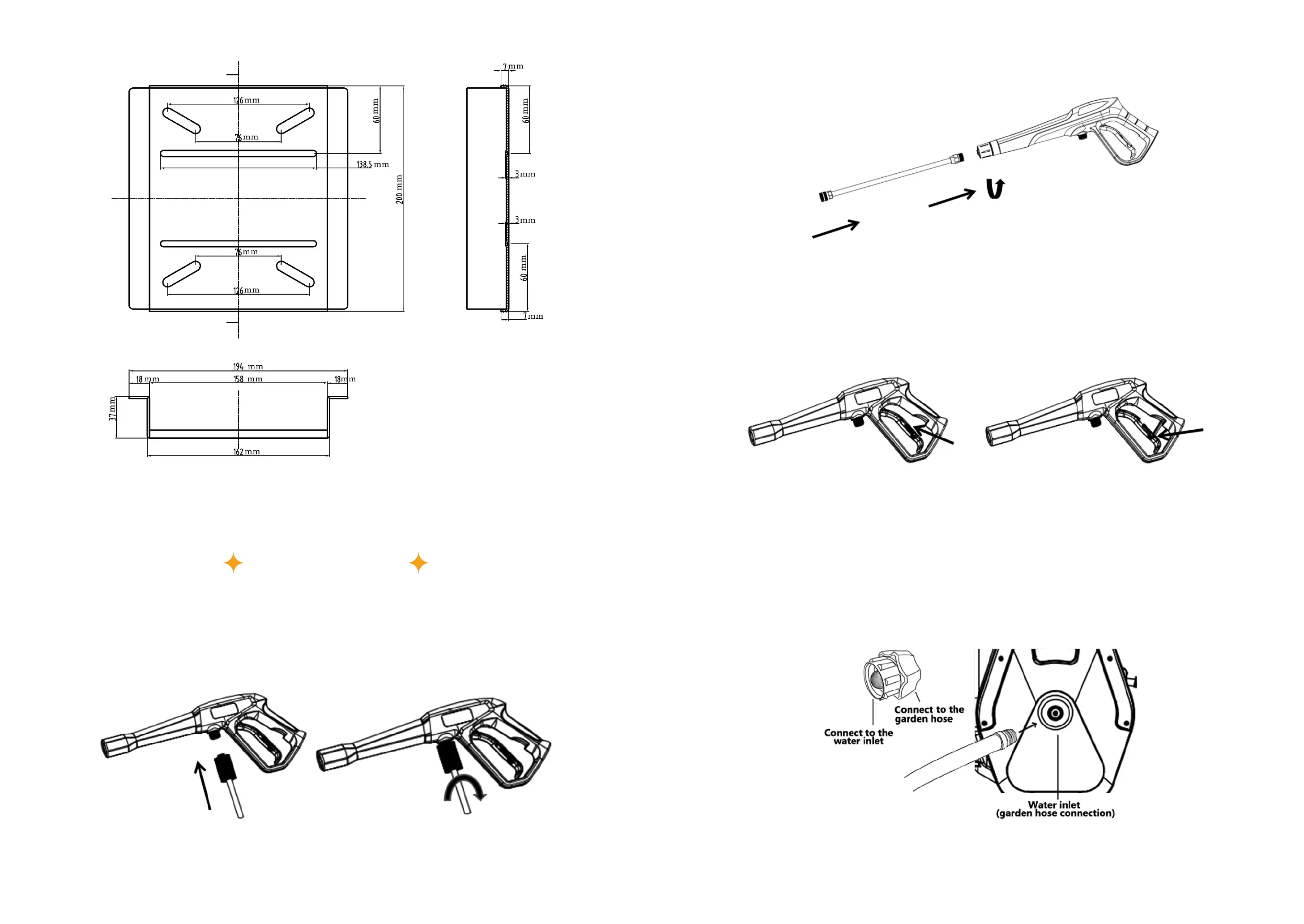 Fixing the matching end of the hose firmly into the gun handle. See figure 2 and 3.