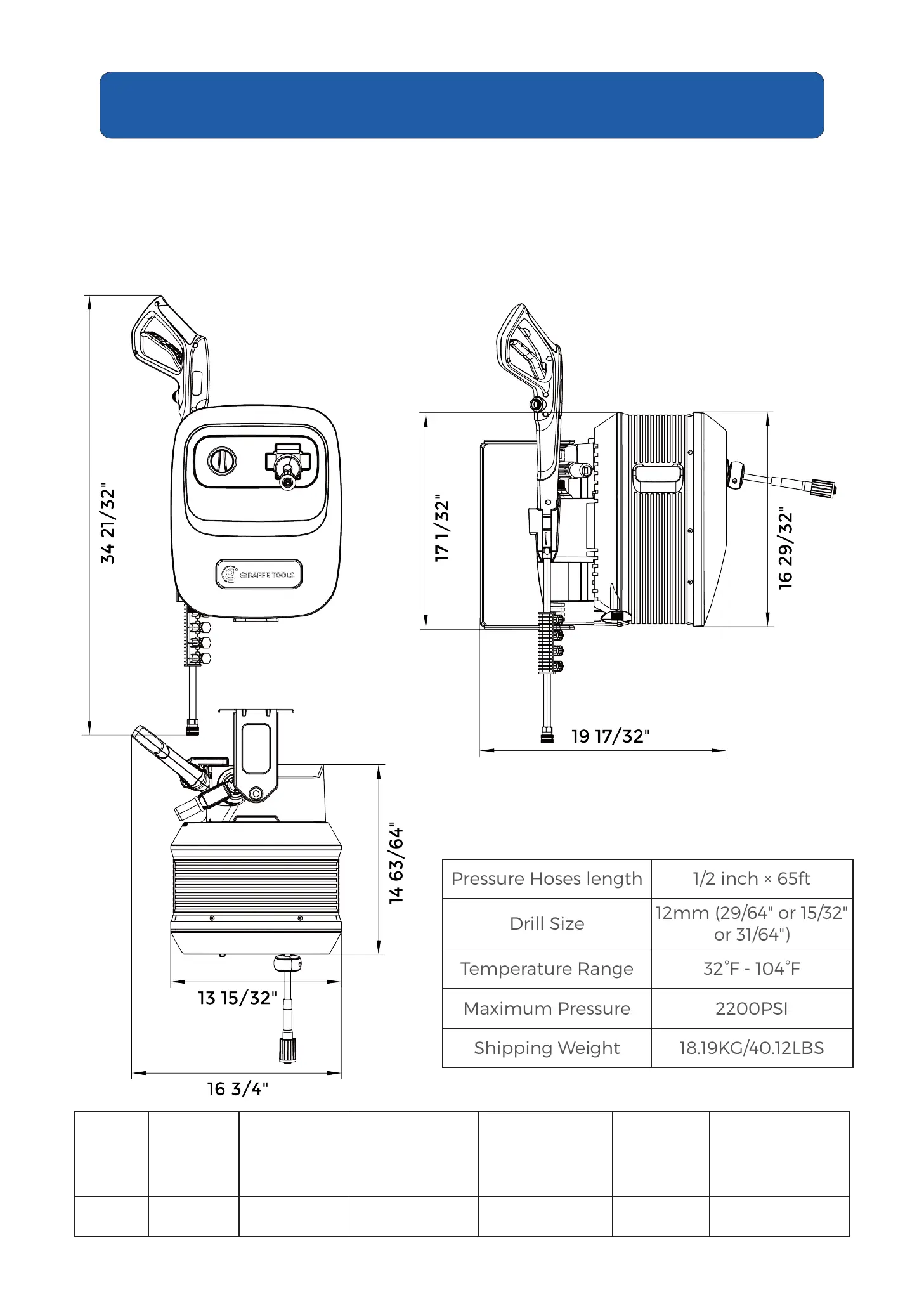 Thank you for choosing Giraffe Tools Grandfalls Pressure Washer Series. Before using the
