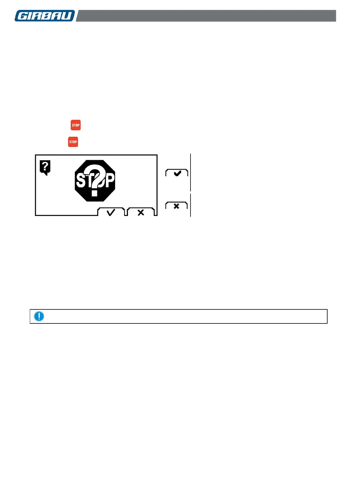 The following icon is displayed on screen, requesting confirmation of the Stop command.