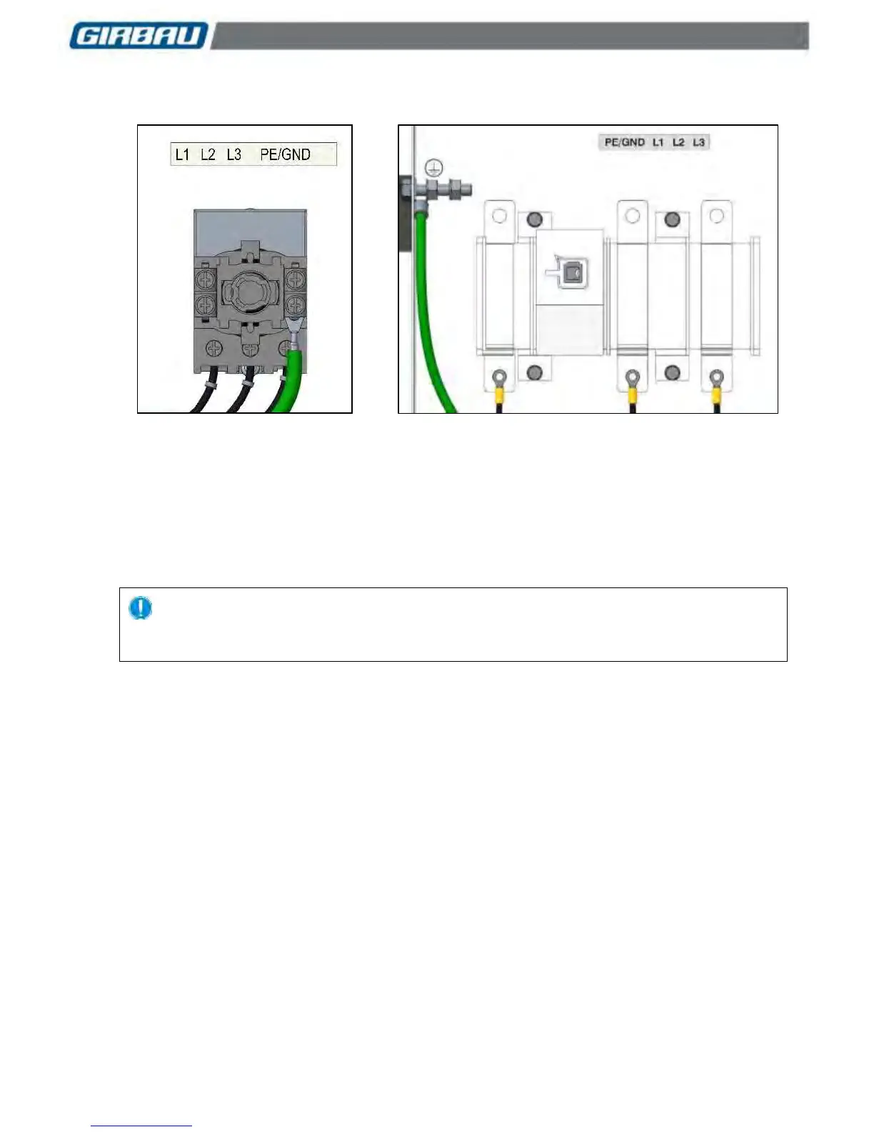 Connect the power supply cable to the terminals of the breaker switch. (Fig. 5.3: Models with gas or steam