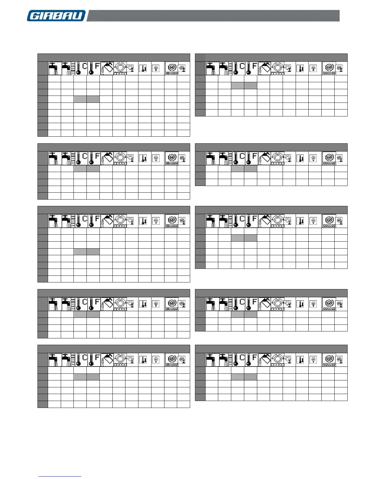 GIRBAU EH030 - 5. PRE-SET PROGRAMS (cont.); 5.3. Contents of pre-set programs