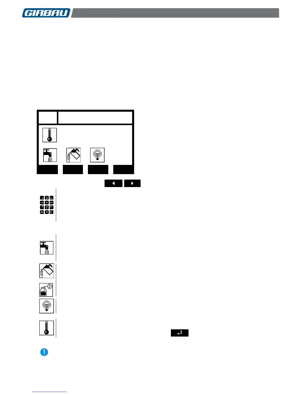 To activate the functions of water input, dosing and draining, keep the key on the numerical