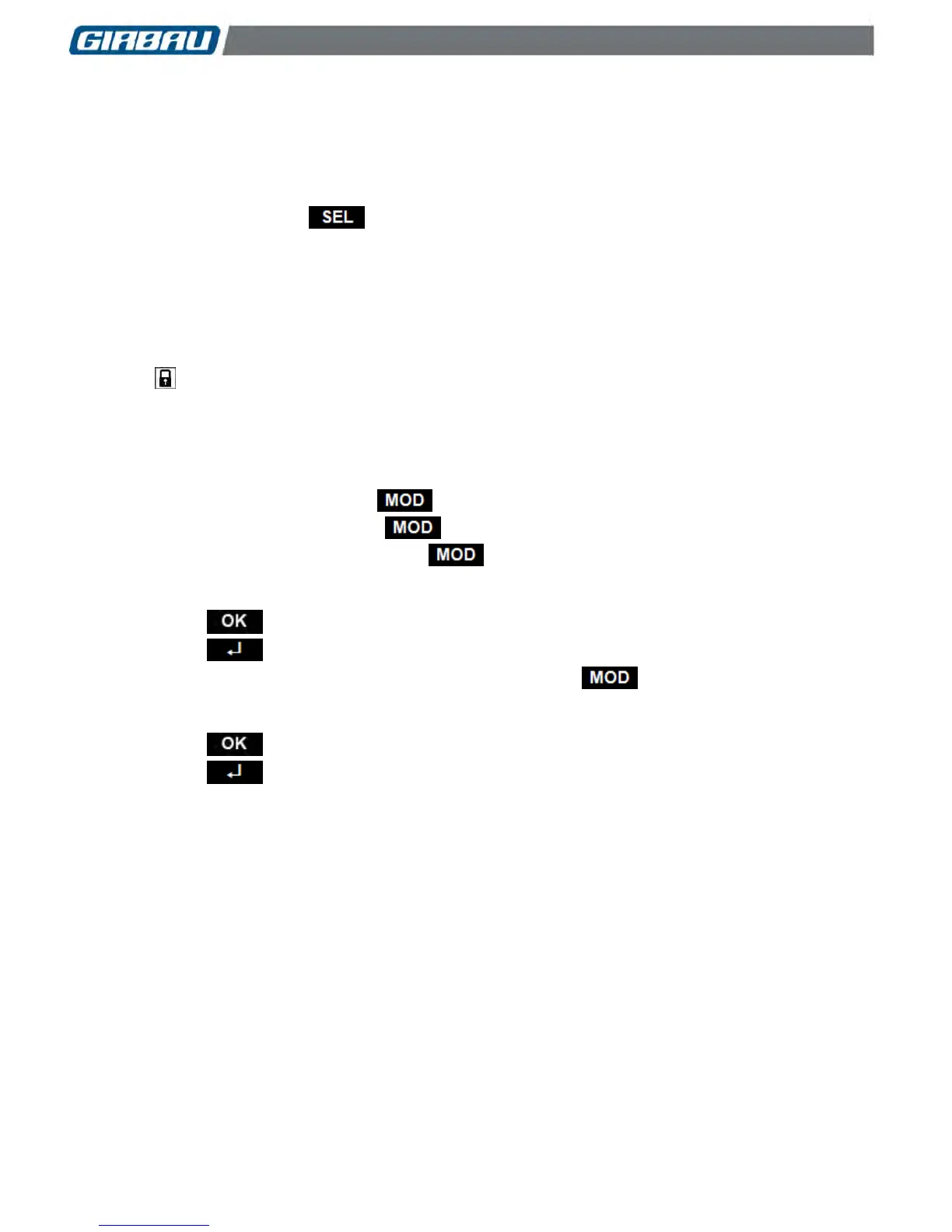CHANGE UNLOCKING PASSWORDS. Program locking. The key accesses the screen for