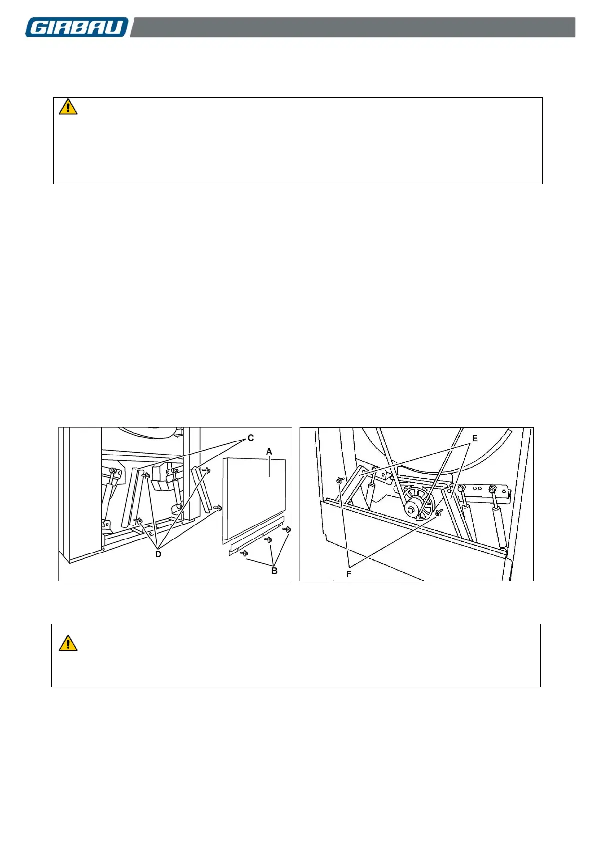 • Remove the two yellow pieces E by removing screws F.