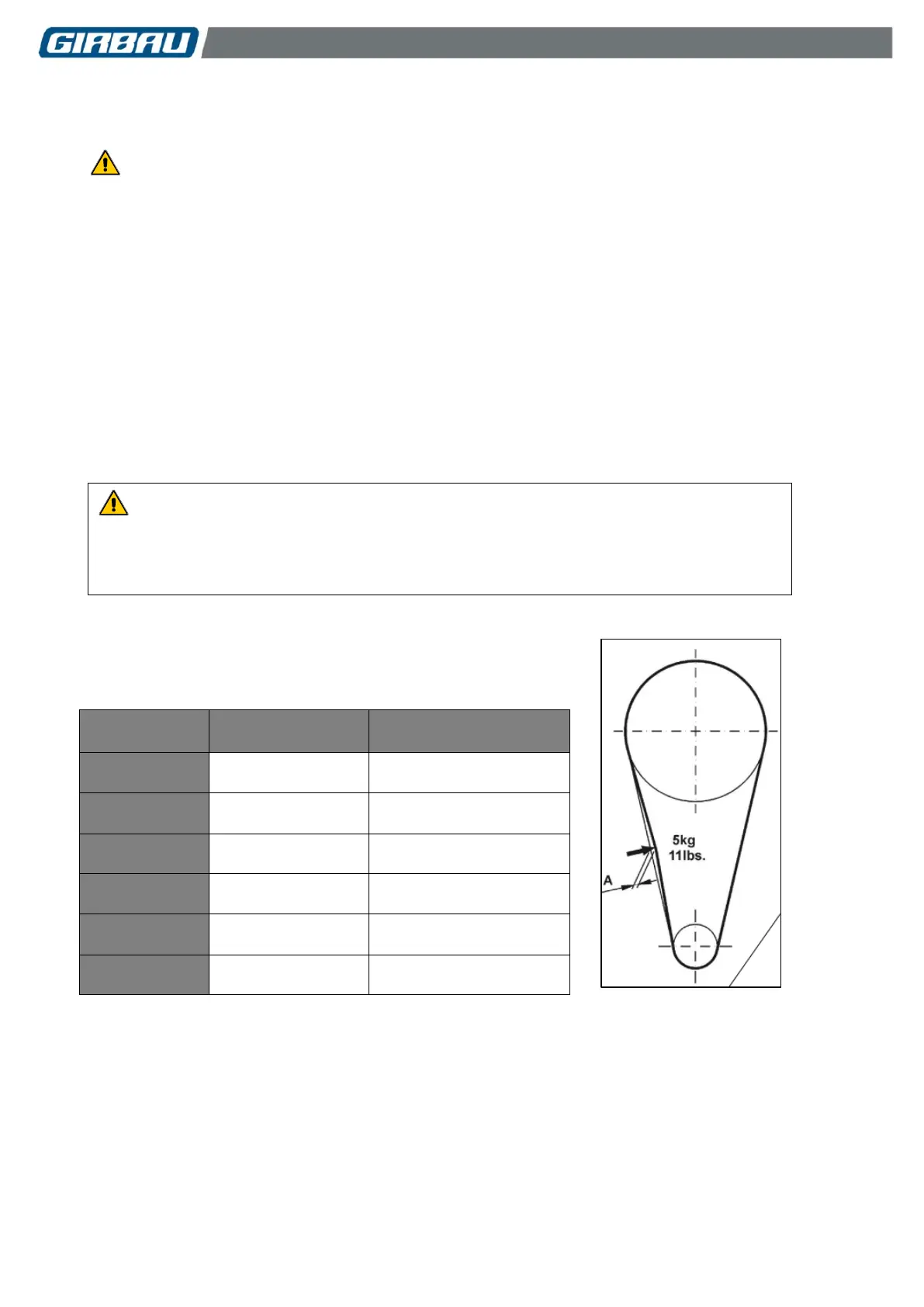 To check the tension of the belts, apply a force in the centre of the