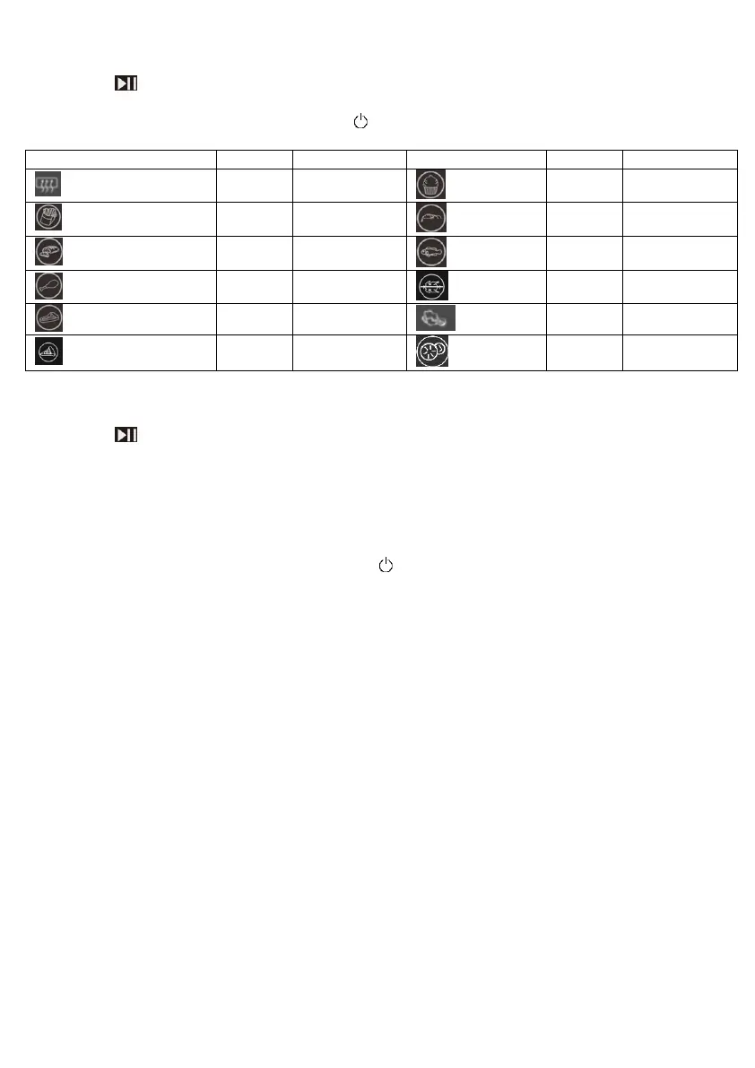 Nota. Tempo e temperatura impostati sono studiati per avere cotture corrette in relazione al tipo di