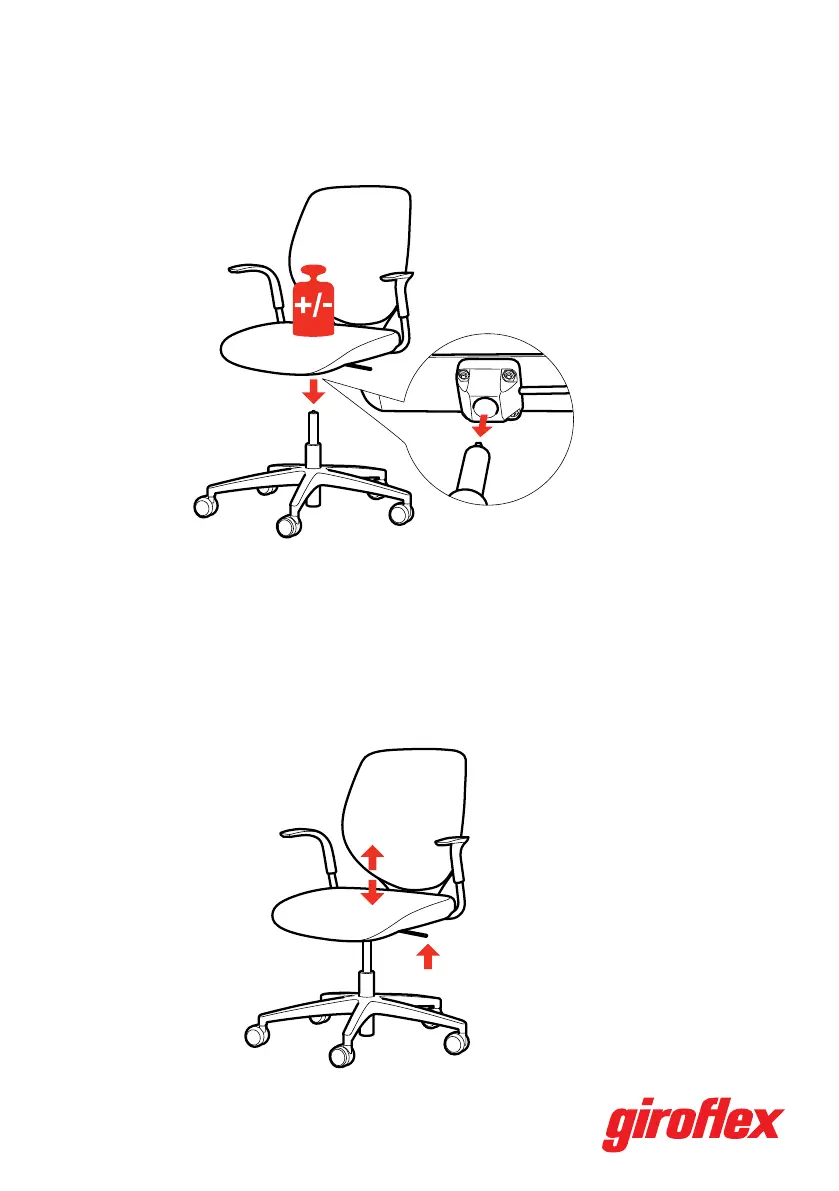 Giroflex 353 C2G - Seat and Base Mounting; Height Adjustment