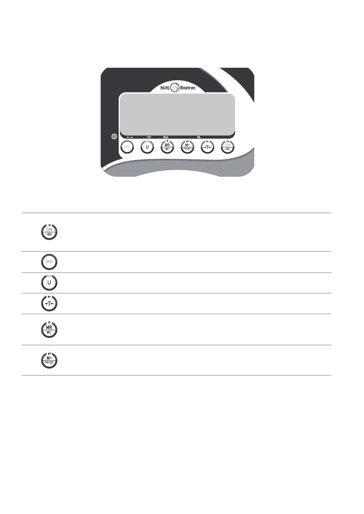 First function; Press this key to switch on the scale.