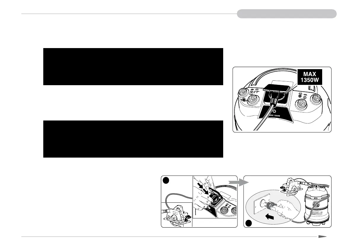 • Tilslut ALDRIG elektroværktøj med større effekt.