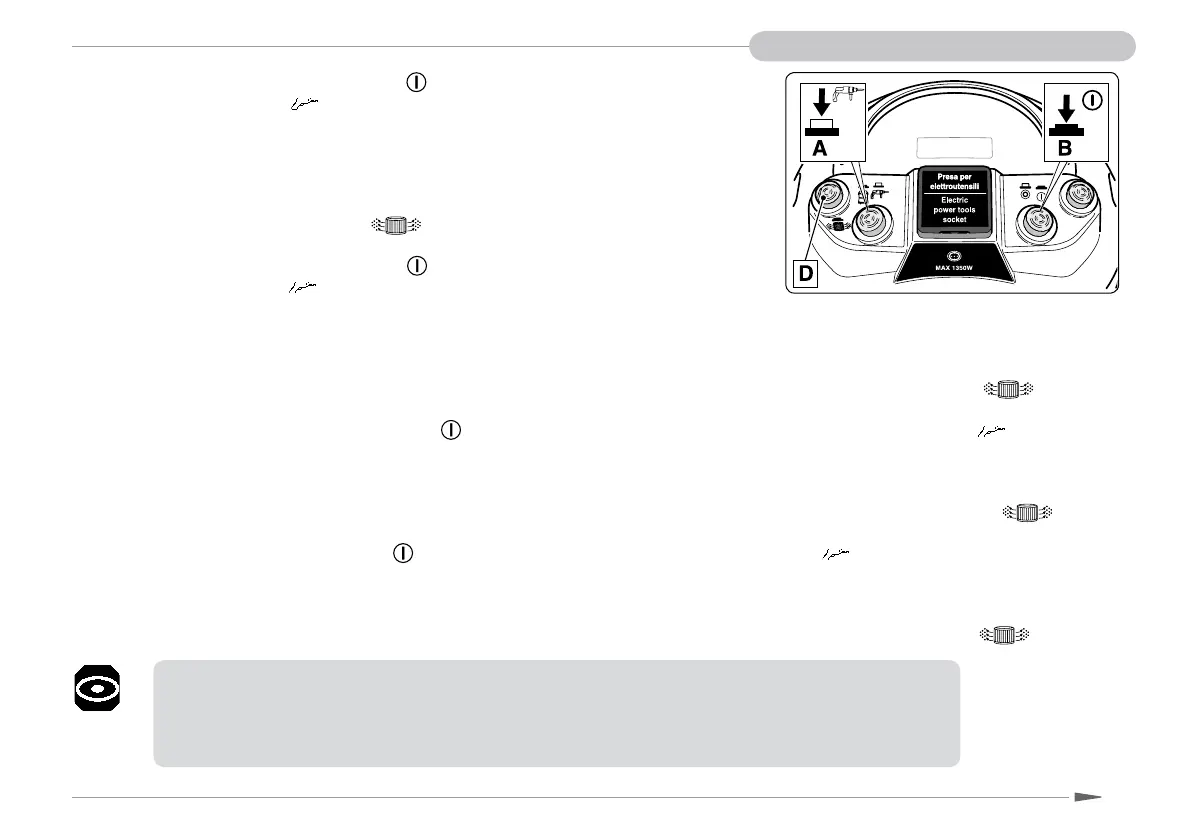 Com o interruptor (“B”) em posição , quando se preme o desviador (“A”) na posição