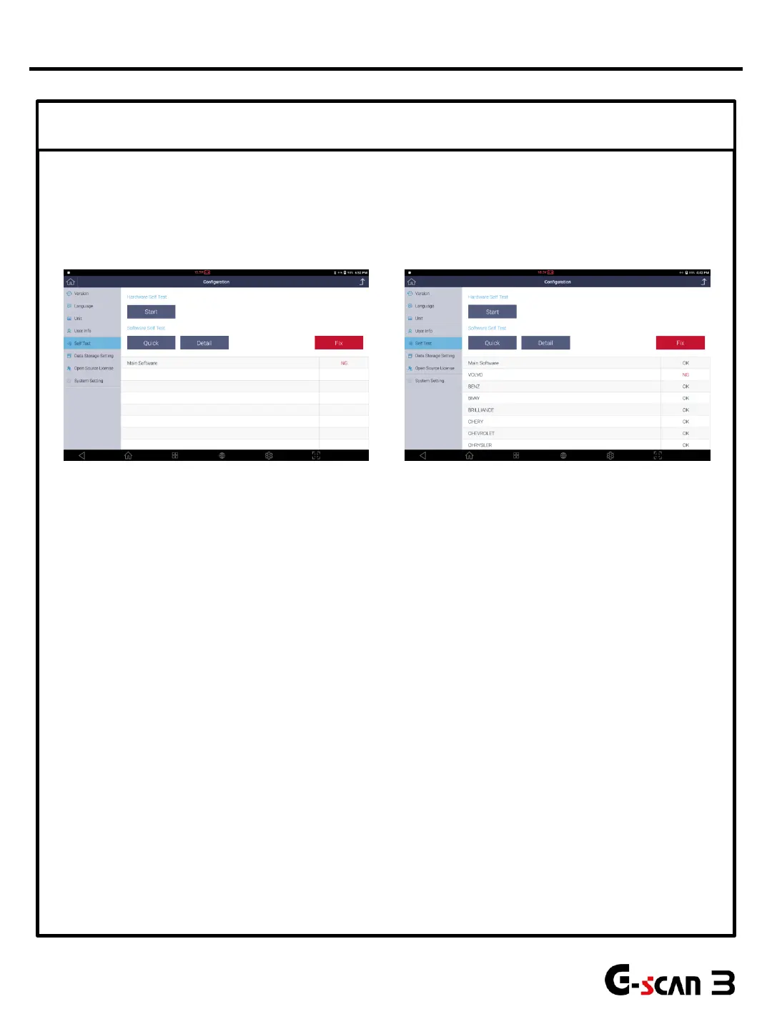 Unlike predecessors, two types of software self test is available in G-scan3.