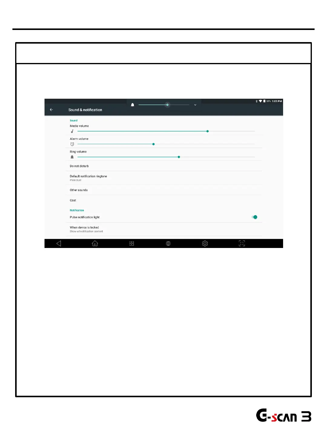 2. Go to Android setting and Sound & notification, press F1 or F2 button to check for proper
