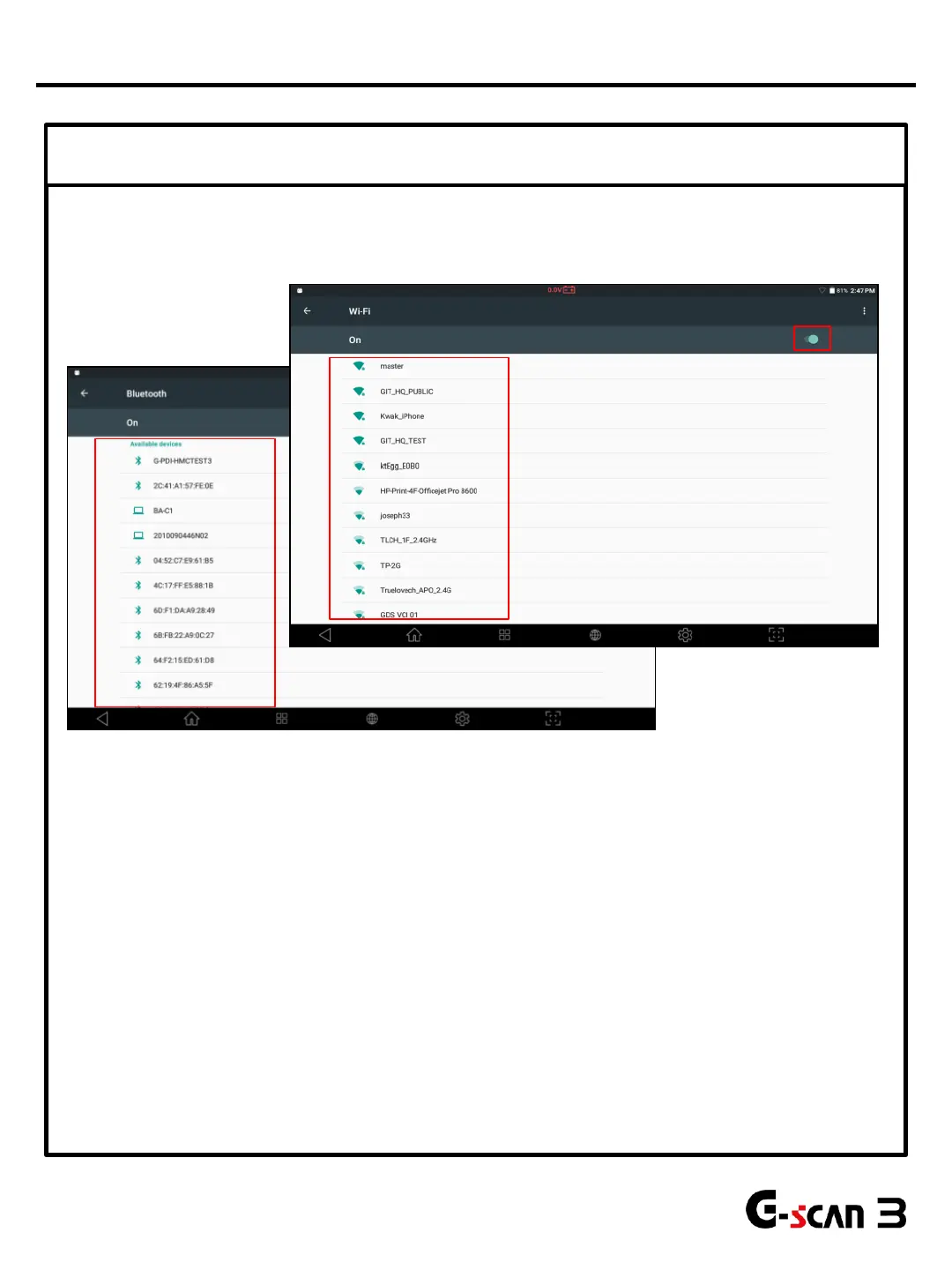 3. Check network condition of the internet router or Bluetooth device connected with G-scan3.