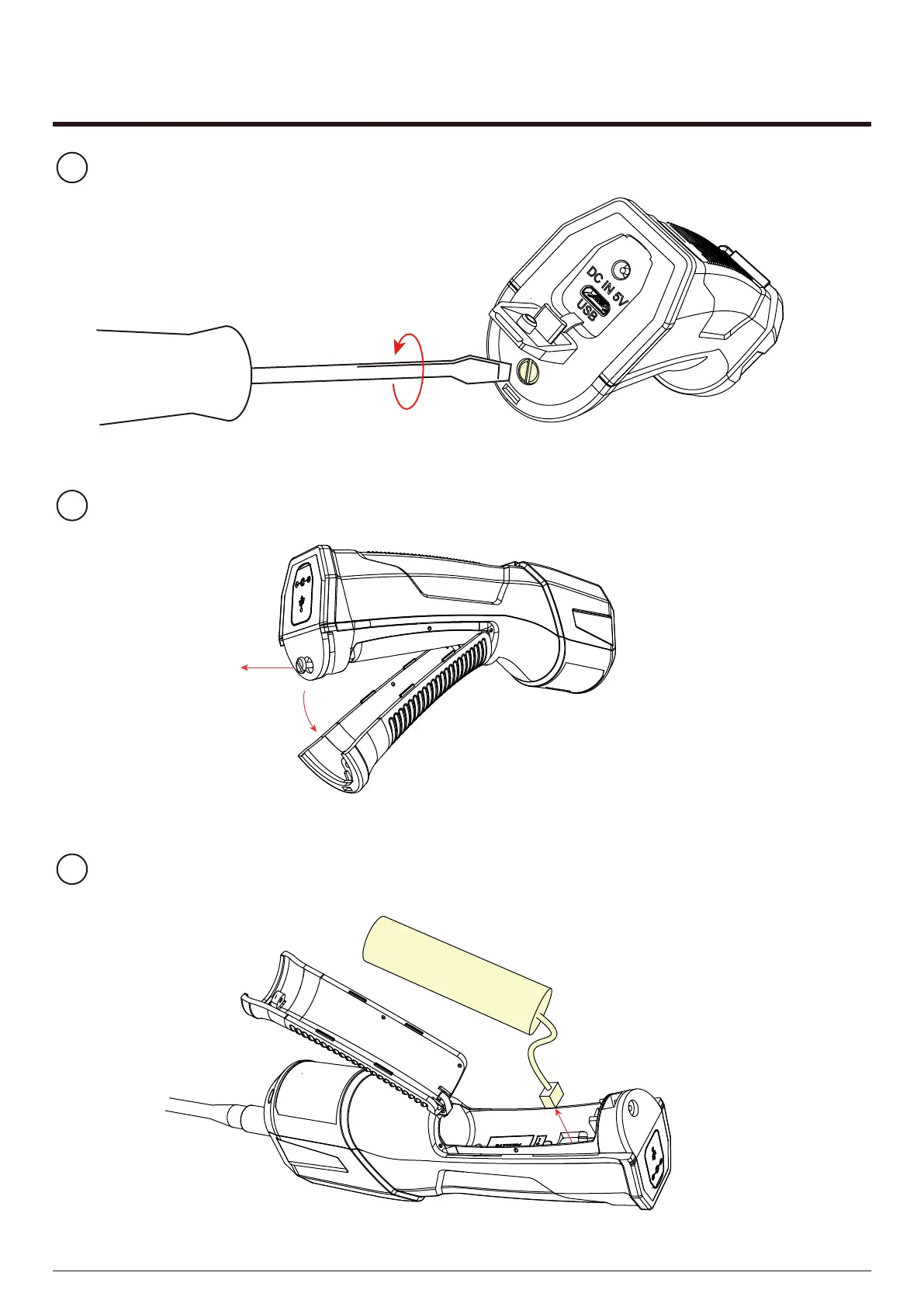 Remove the screw and detach the battery cover on the handle part downward.