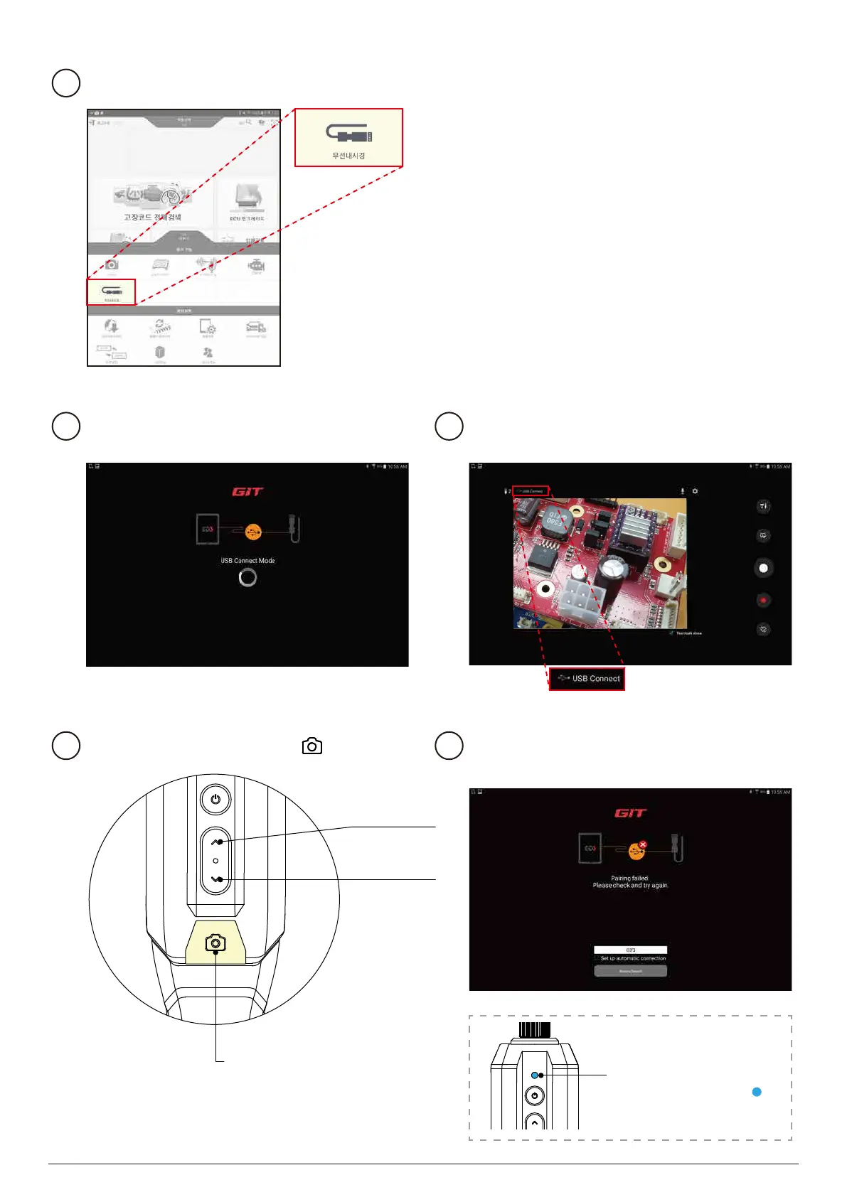 If the USB connection fails, reconnect