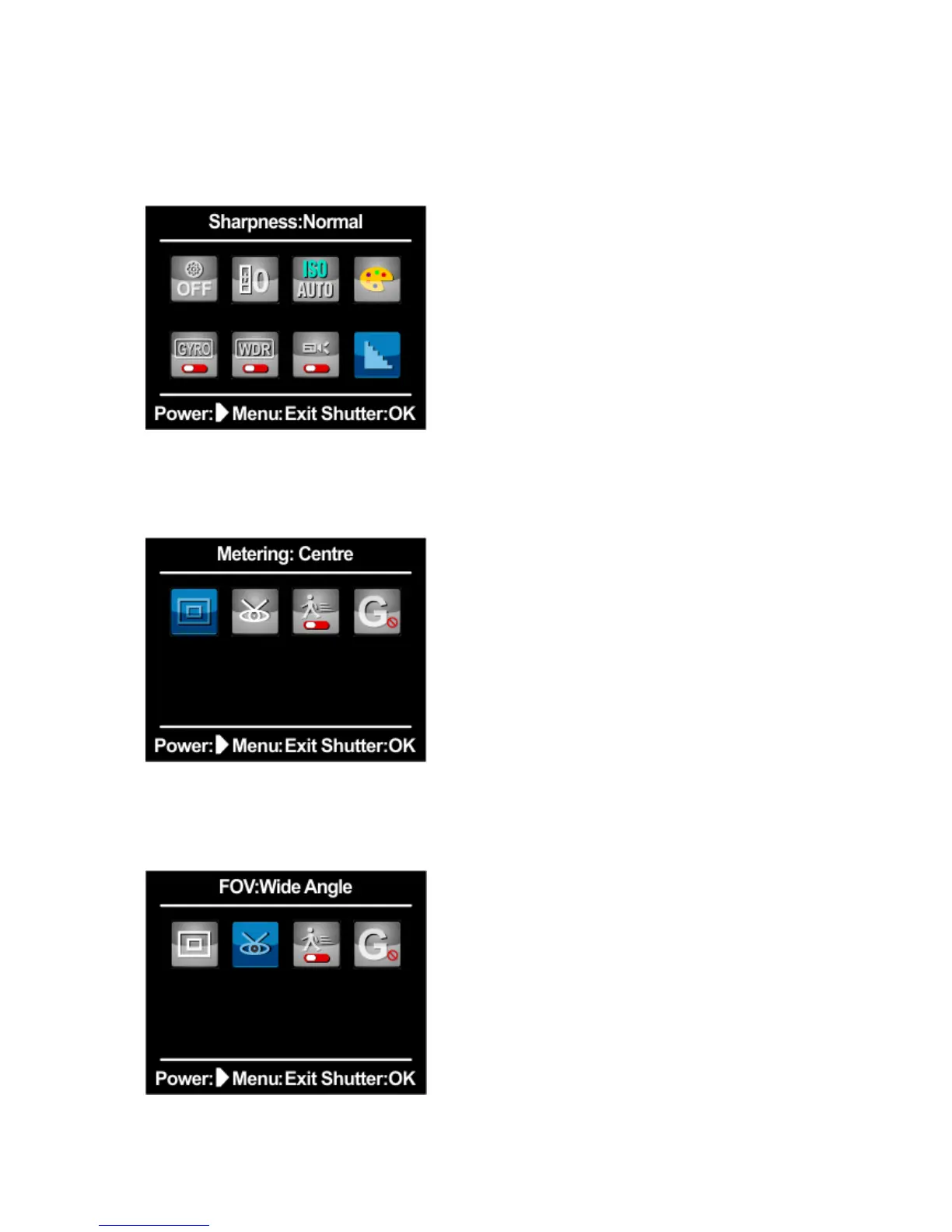 GitUp GIT2 - Video Image Quality Settings; Sharpness, Metering, and FOV