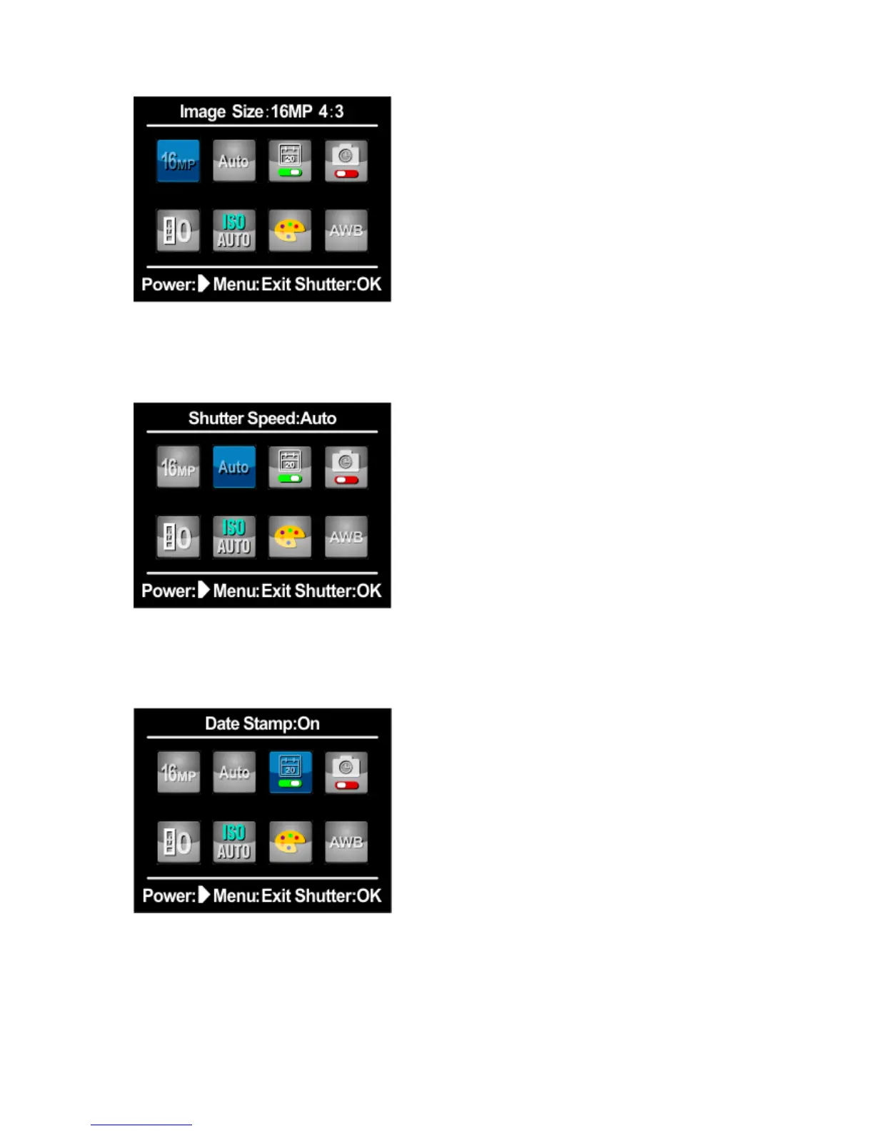 Setting Options Auto;1/30Sec;2 Sec;5 Sec;10 Sec;15 Sec;20 Sec;30 Sec;1 Min