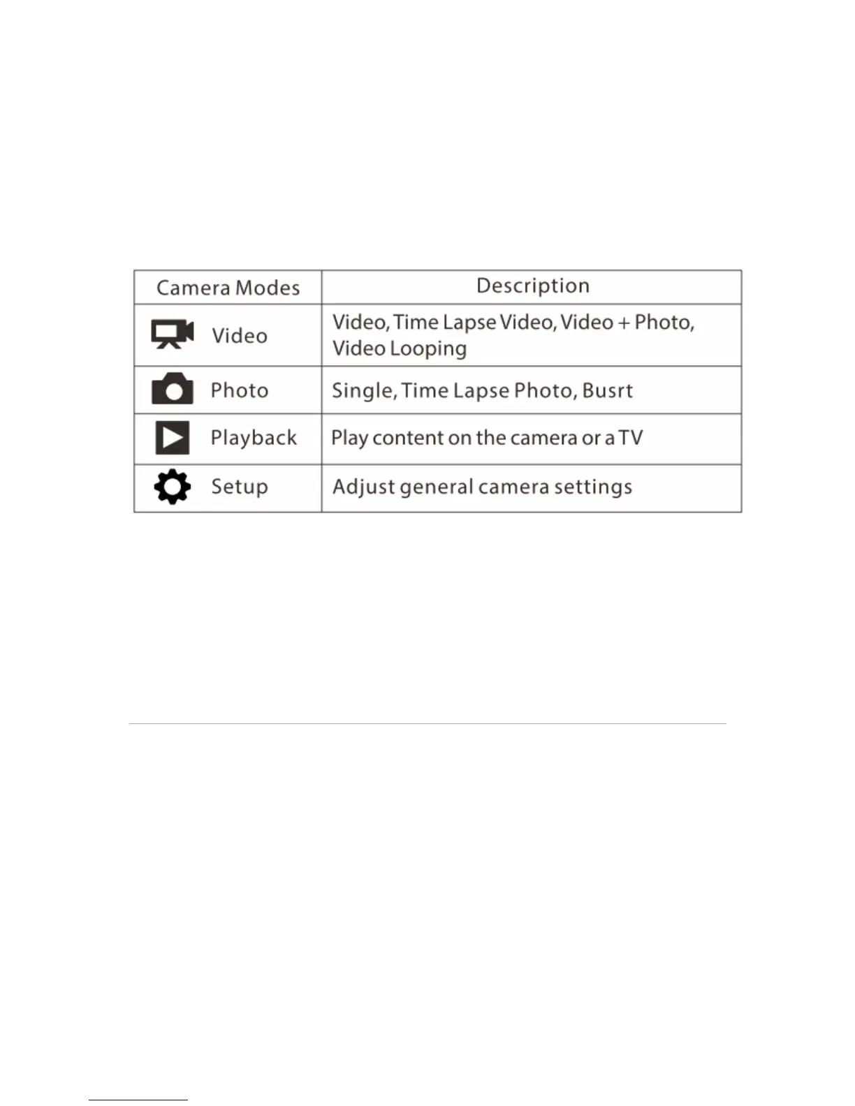 modes for Git2: Video;Photo;Playback;SetUp
