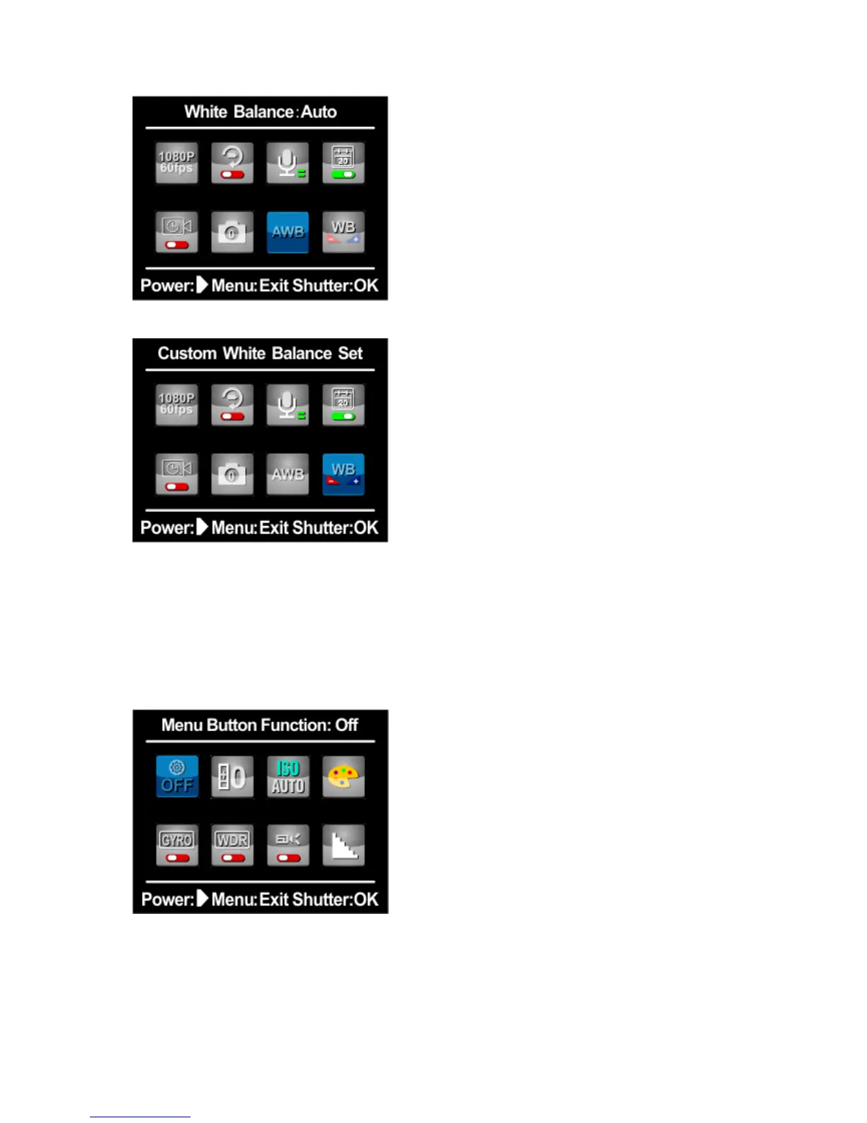 Available options for Menu Button Function are: Exposure Lock/White Balance Lock/EV and WB