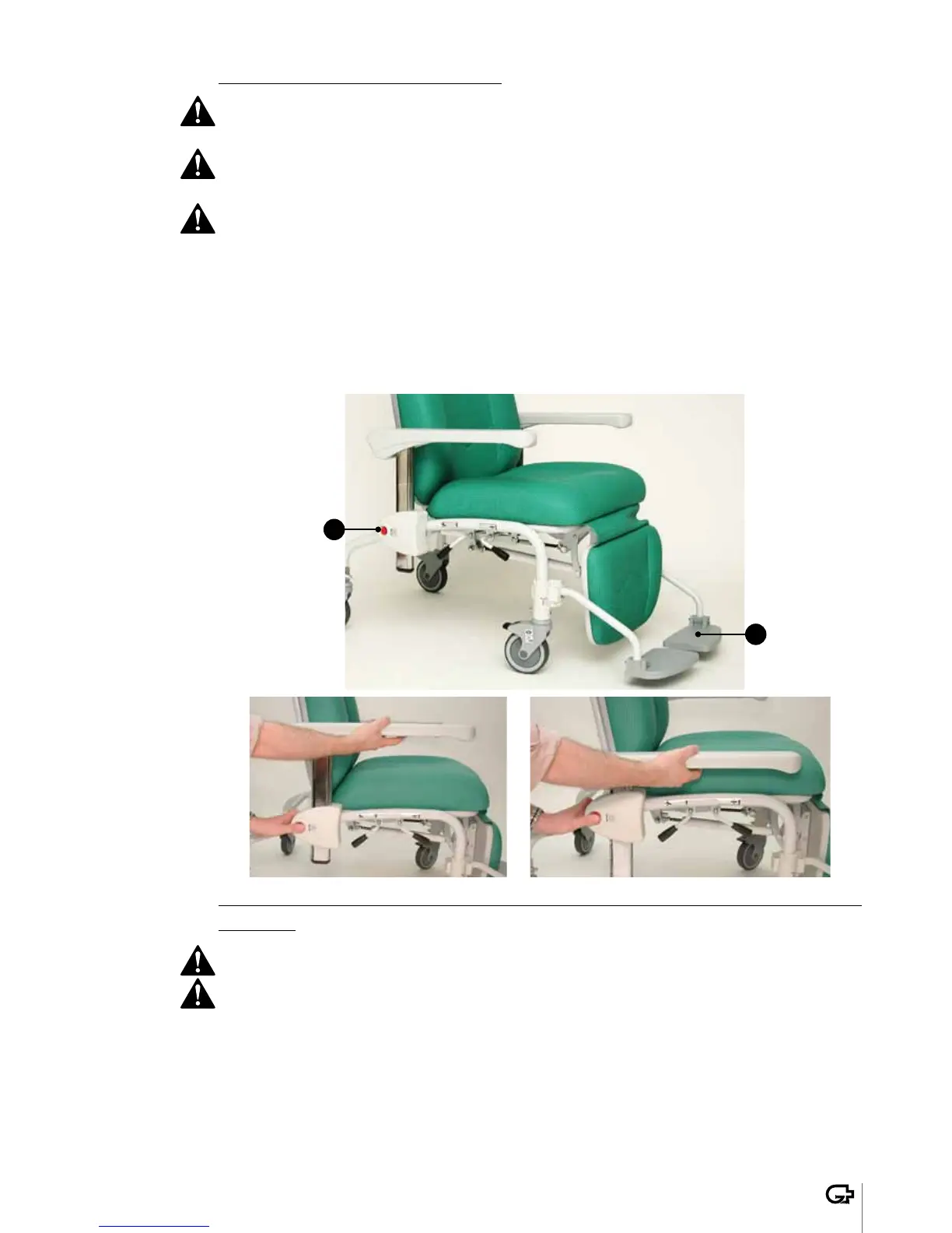 WARNING! Sitting down and getting out of the armchair must be performed in presen-