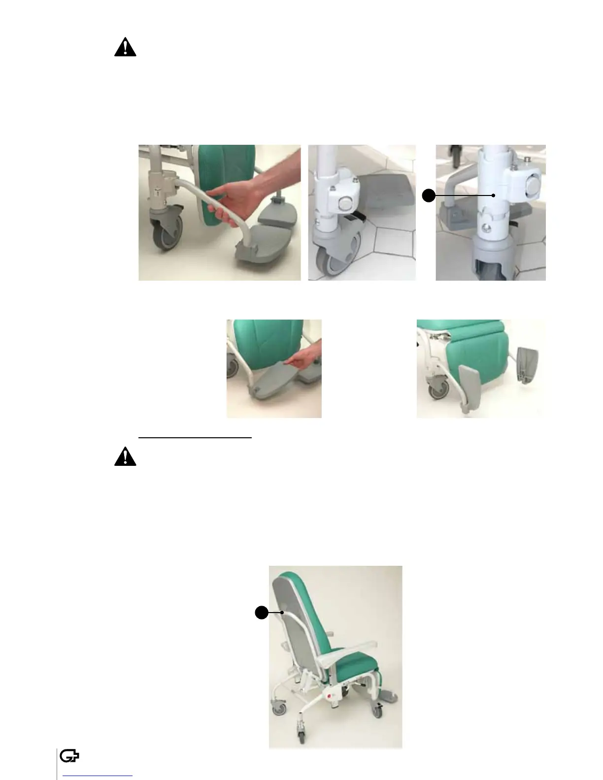 WARNING! Block the wheels and warn the patient before adjusting the chair in any