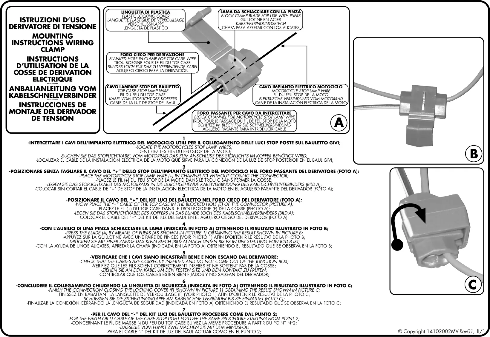 GIVI E105 - Wiring Clamp Installation; Identify Motorcycle Wires; Connect Positive Wires; Secure Wiring Clamp
