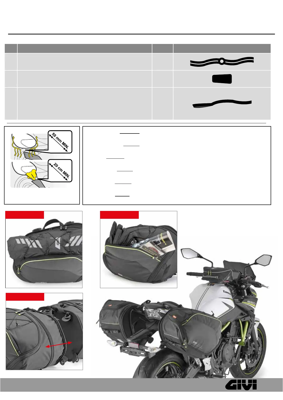 ATTENTION: Tenez les sacoches à une distance raisonnable du système d’échappement.