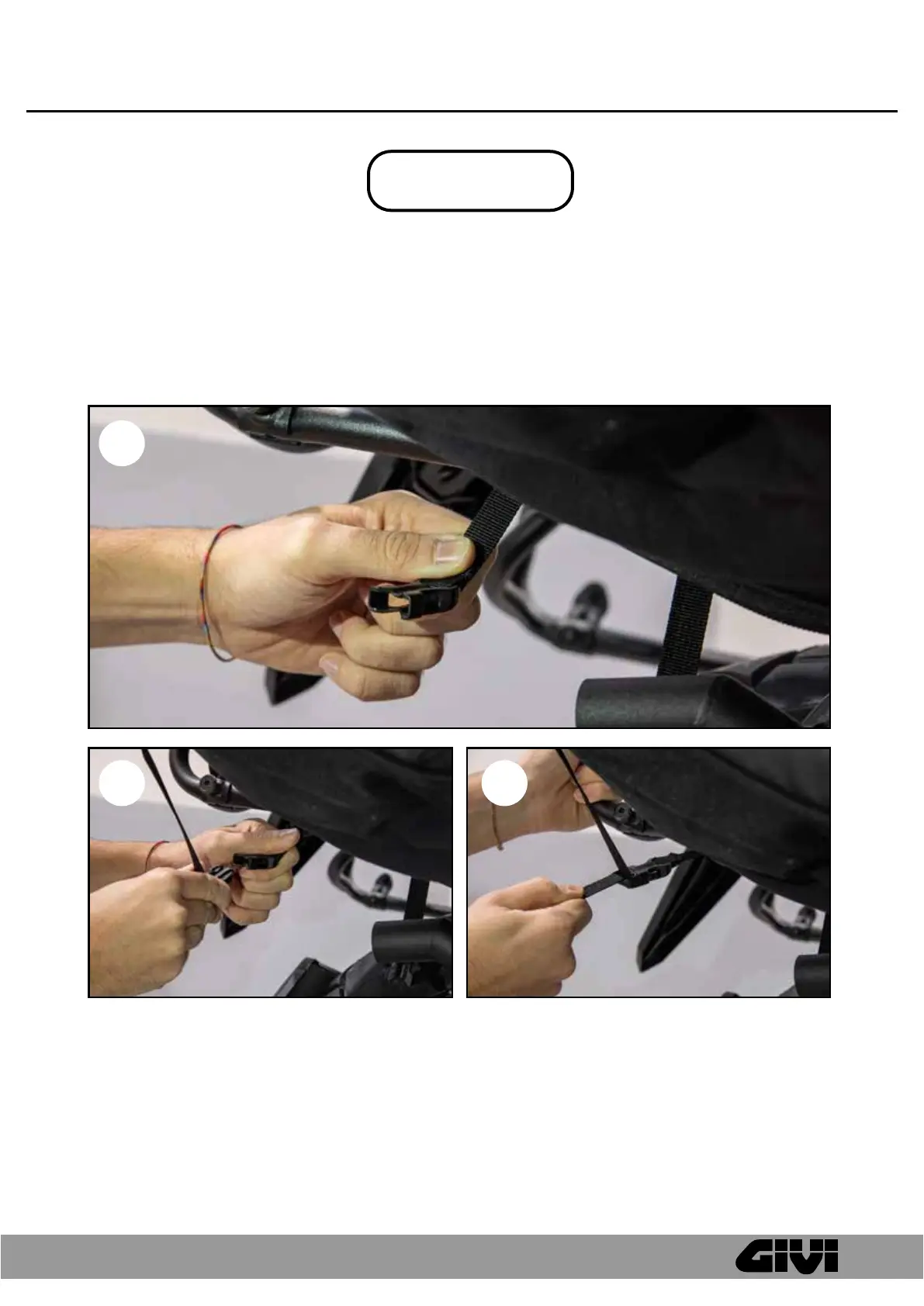 GIVI® consiglia inoltre di ancorare al telaio la cinghia posta nella parte inferiore delle borse come ulteriore precauzione.