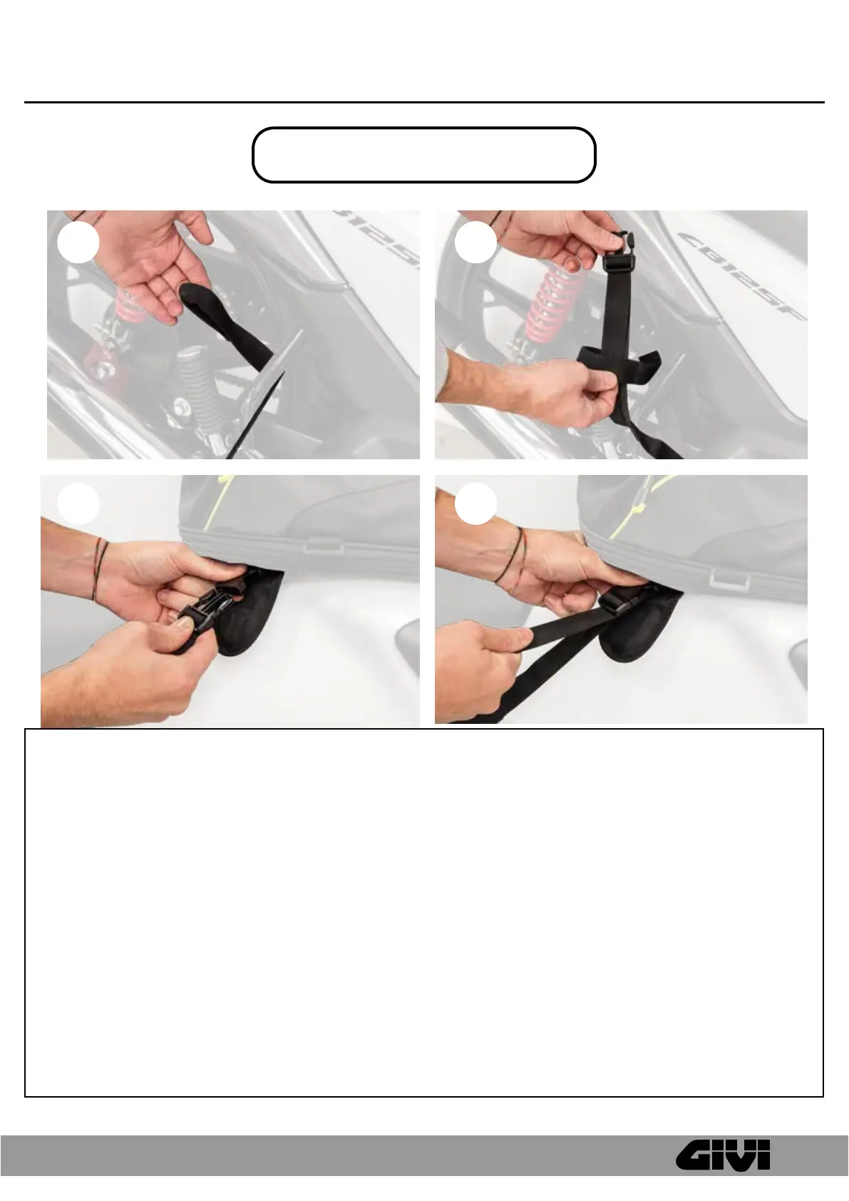VEUILLEZ VÉRIFIER SOIGNEUSEMENT QUE LA SACOCHE N’AFFECTERA PAS LA MANIABILITÉ DU VÉHICULE,