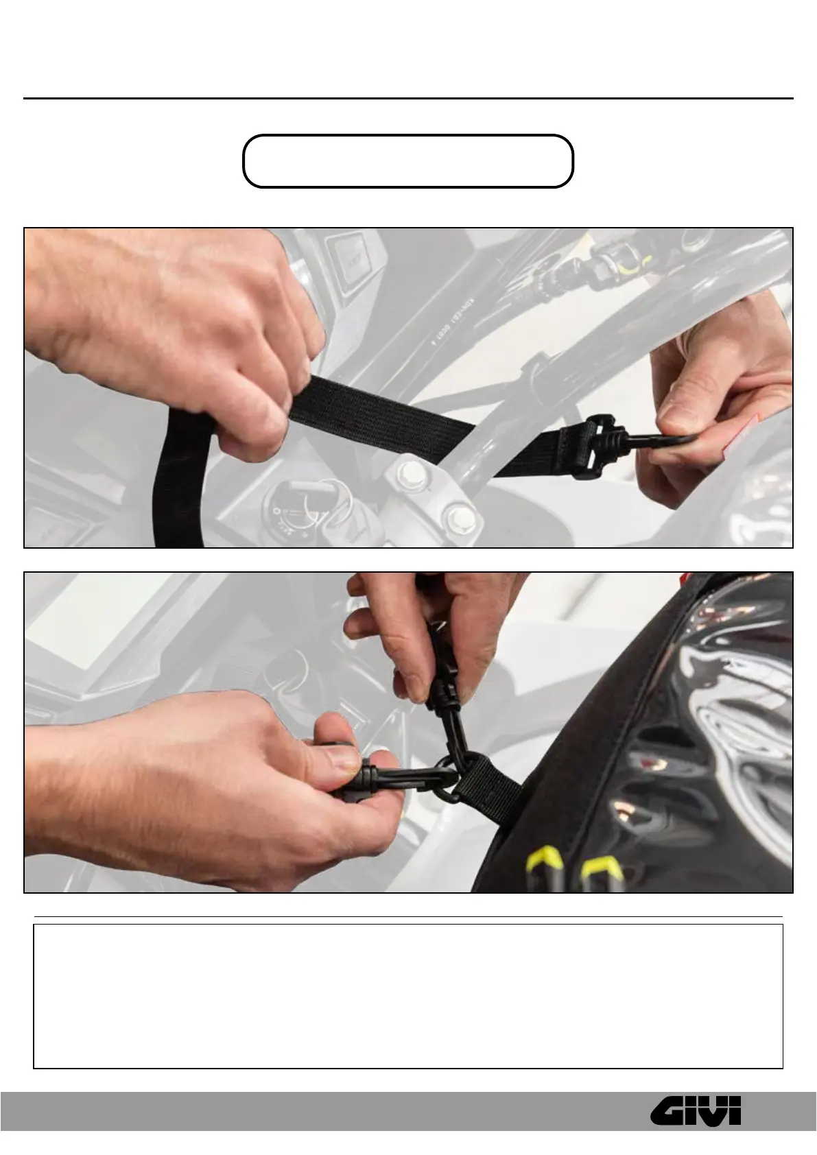 ATTENZIONE: Vericare il corretto aggancio delle borse prima di mettersi in marcia.