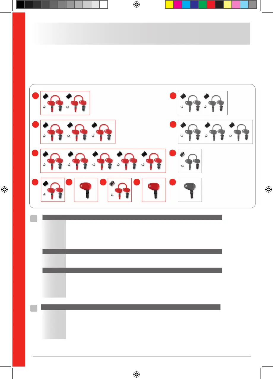 Chiavi serratura per 3 valigie, complete di boccole, con impugnatura rossa