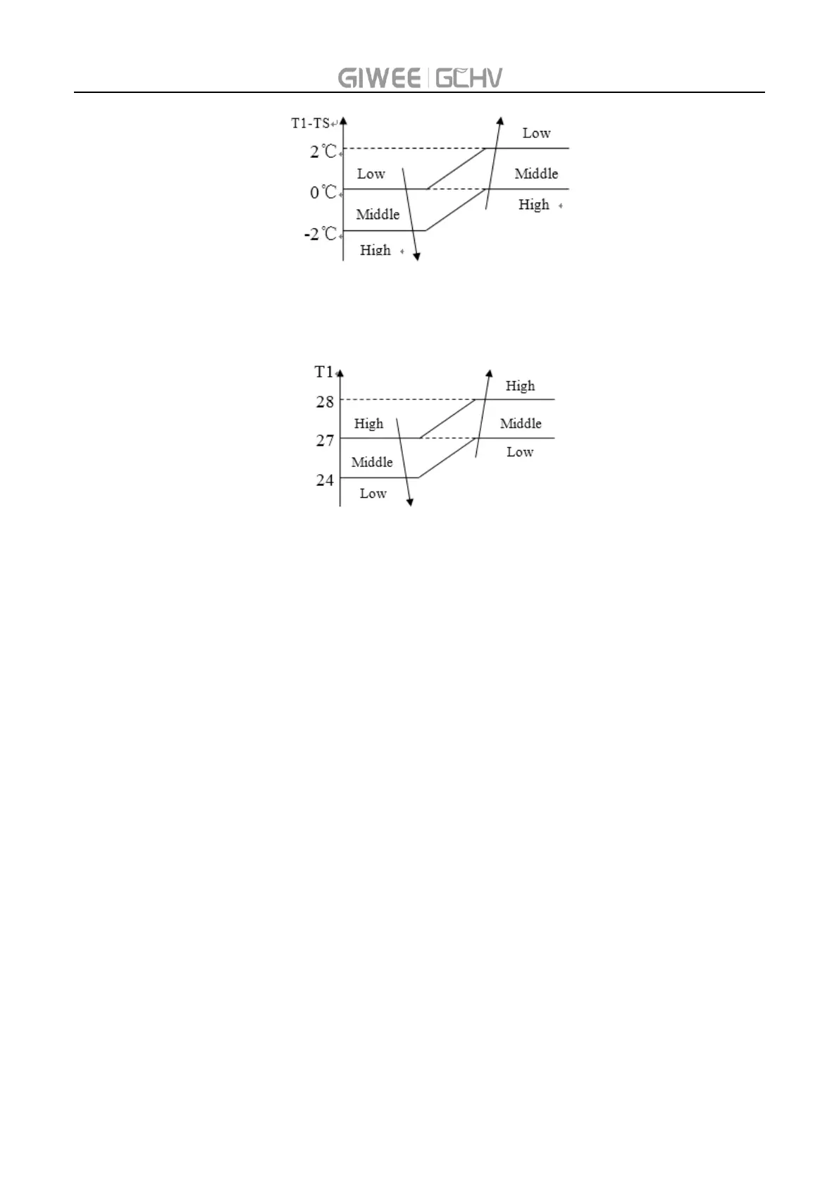 The setting temperature will increase in cooling mode or decrease in heating mode by 1 degree