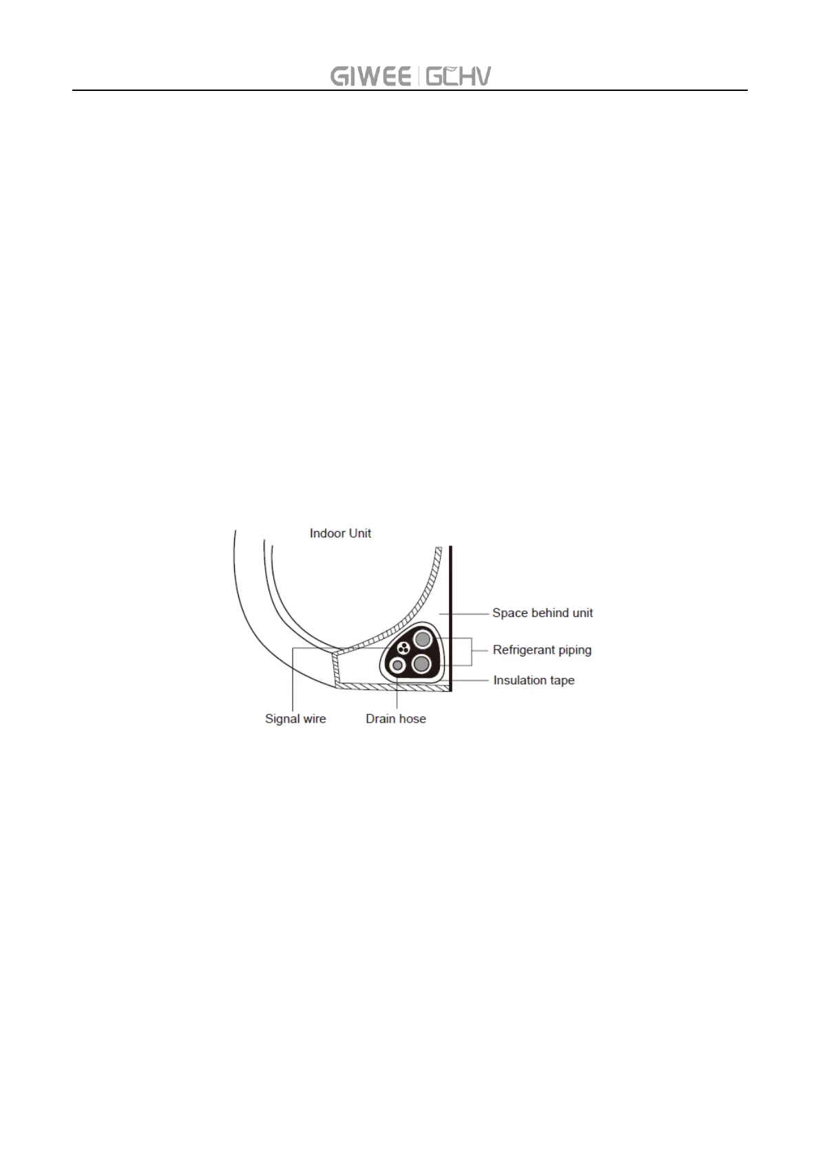 1. Bundle the drain hose, refrigerant pipes, and signal cable according to picture below.