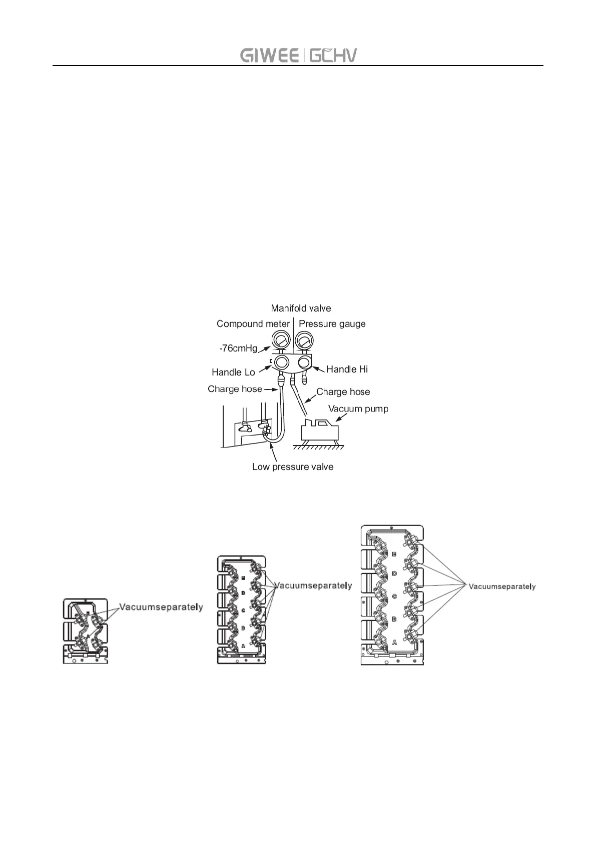 operation of the vacuum pump. Make evacuation for 15 minutes or more and check that the