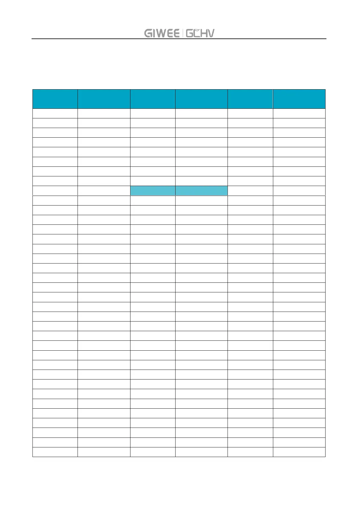 GIWEE C4OU-D36HR4-D01 - Appendix; Temperature Sensor Resistance Value Table for T1,T2,T3 and T4 (°C - K)