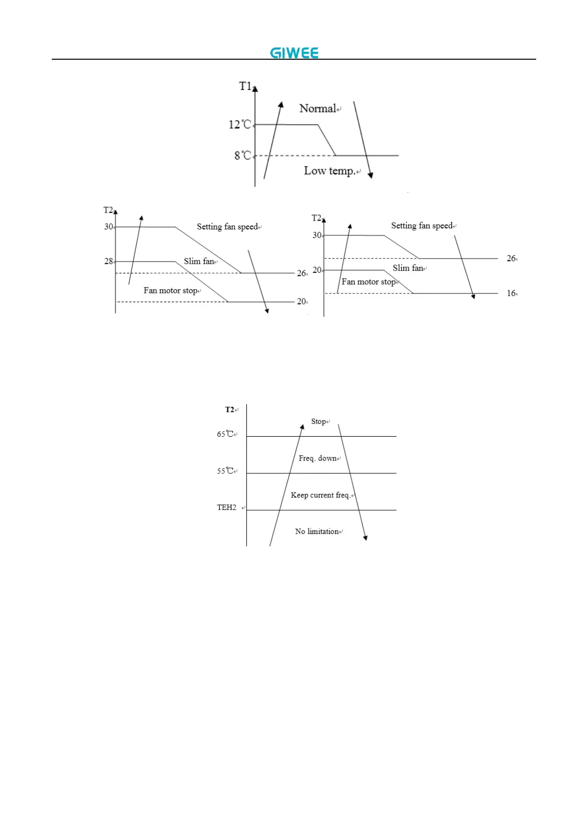 T2<30℃, the fan motor will stop immediately.