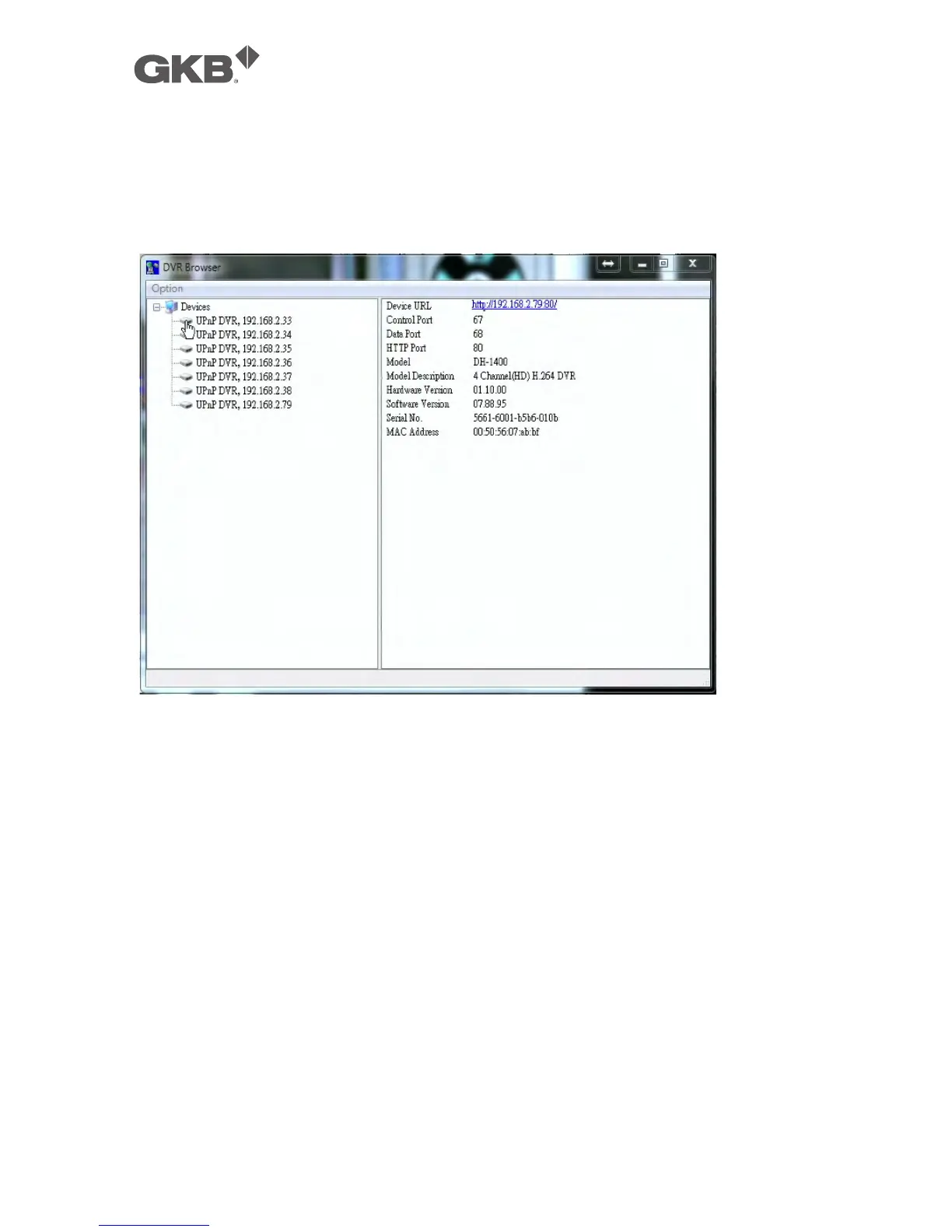 To run the DVR/NVR Browser Utility under MS-Windows, please select