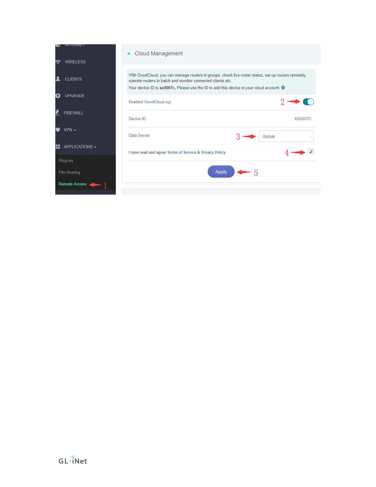 Follow the steps above, to enable cloud management feature, choose the Data