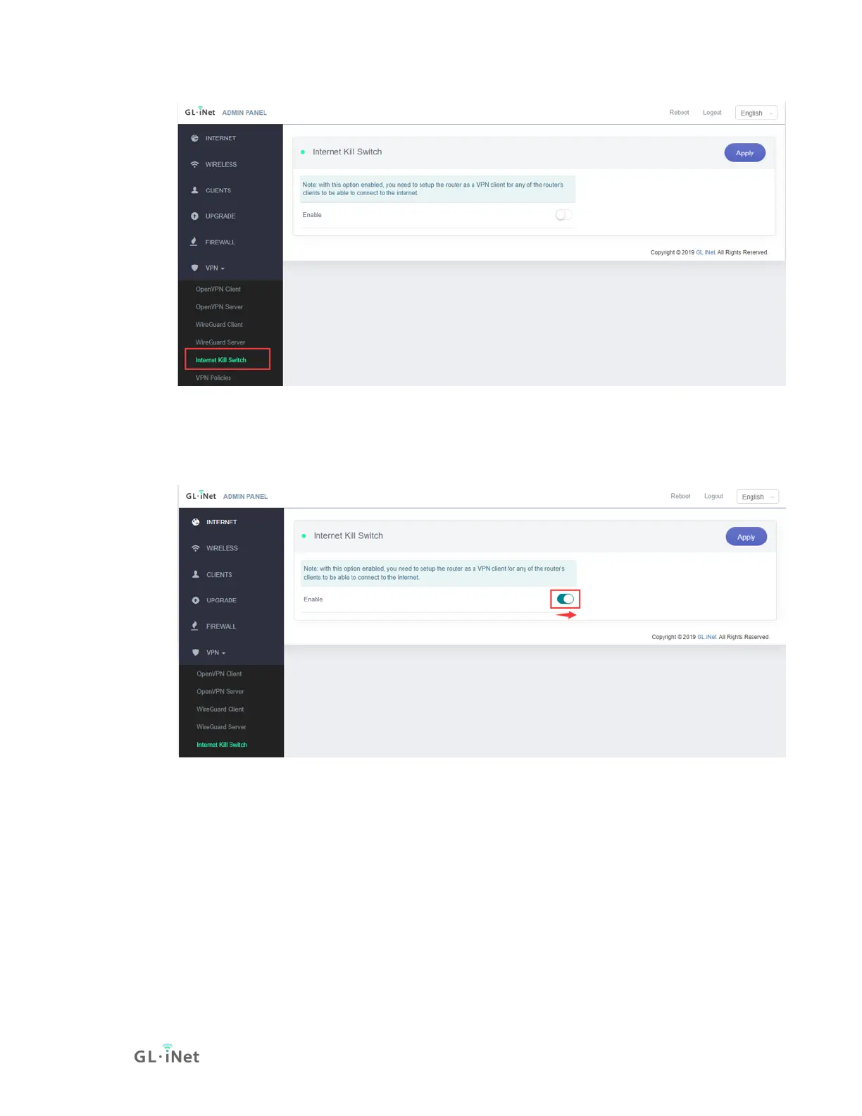 2) Enable "Internet Kill Switch".