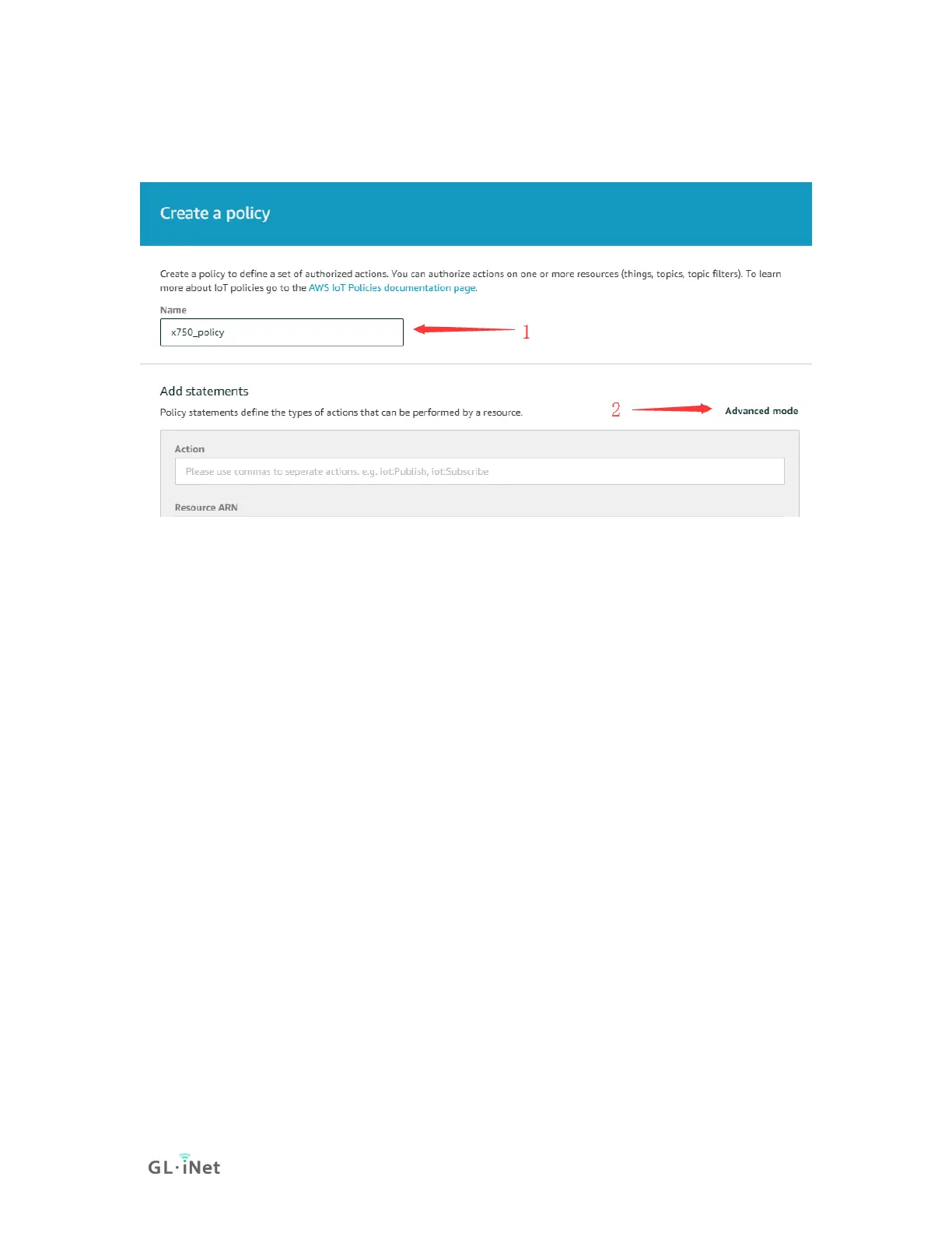 2) Enter a Name for the policy,such as x750_policy, then Advance