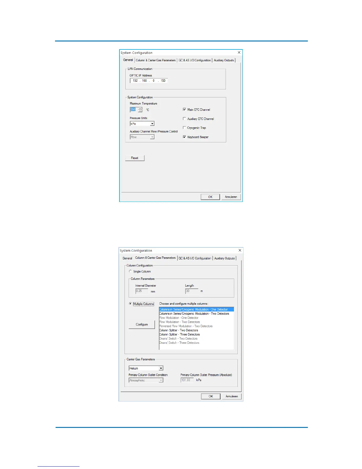 Parameters related to the host GC column, carrier gas type, outlet pressure etc. can be set via